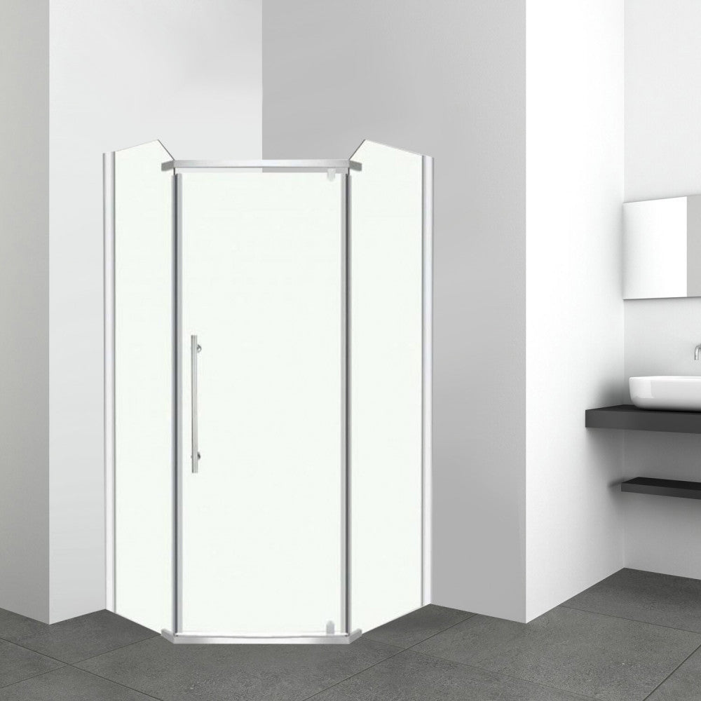 Öt szögletű aszimmetrikus nyílóajtós zuhanykabin, európai gyártmány.