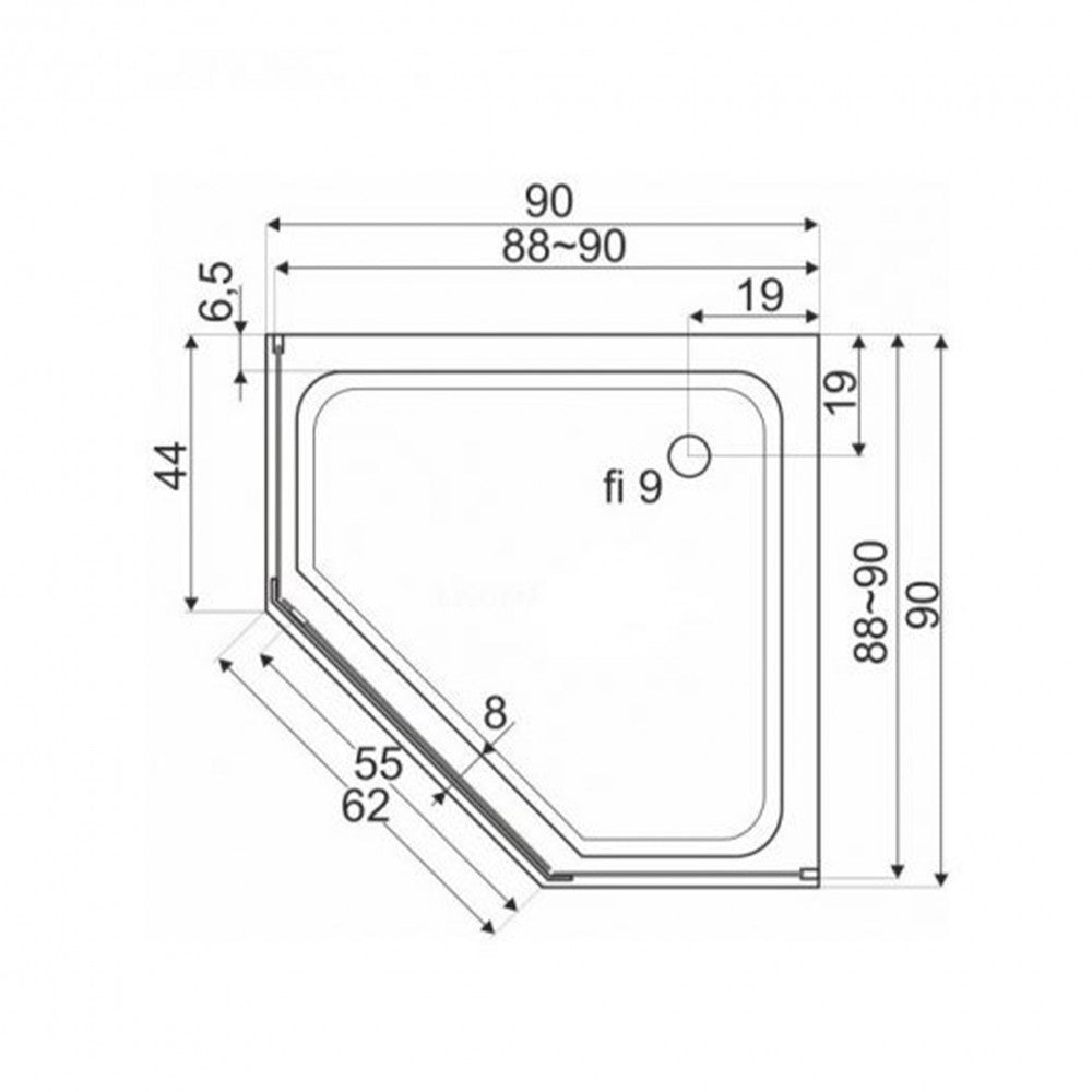 5 szögletű SLIM zuhanytálca a Glasgow kabinhoz.