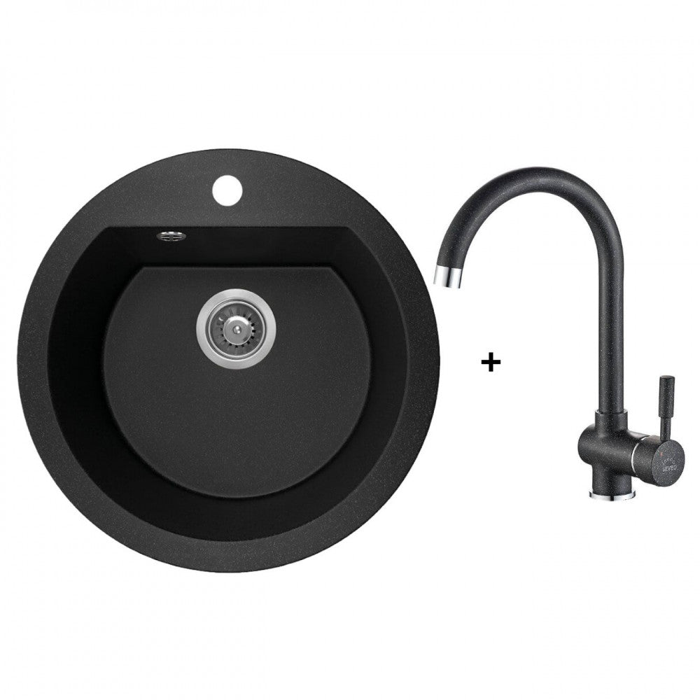 Laveo Dafne szemcsés fekete szett álló csappal, helytakarékos szifonnal