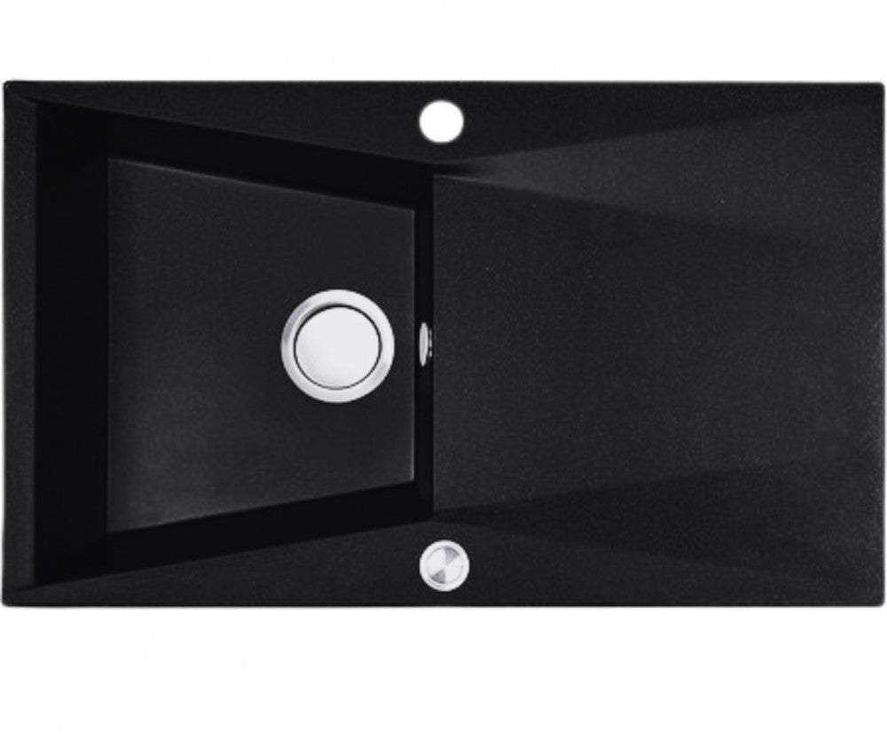 Laveo GRENADA csepptálcás matt fekete mosogató automata dugókiemelős, helytakarékos szifonnal
