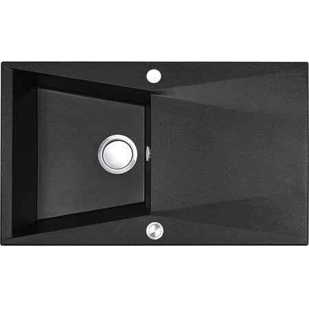 Gránit mosogató , kialakítás: 1 medence csepptálcával , méret: 480x780x204 mm, szekrényméret: 500 mm , felület: fekete, helytakarékos szifonnal és dugókiemelővel
