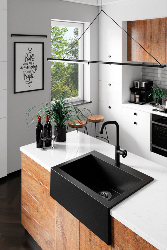 Laveo KOMODO fekete mosogató helytakarékos szifonnal