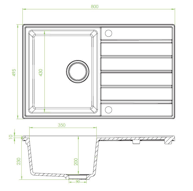 Laveo MARGARITA csepptálcás fehér mosogató automata dugókiemelős, helytakarékos szifonnal