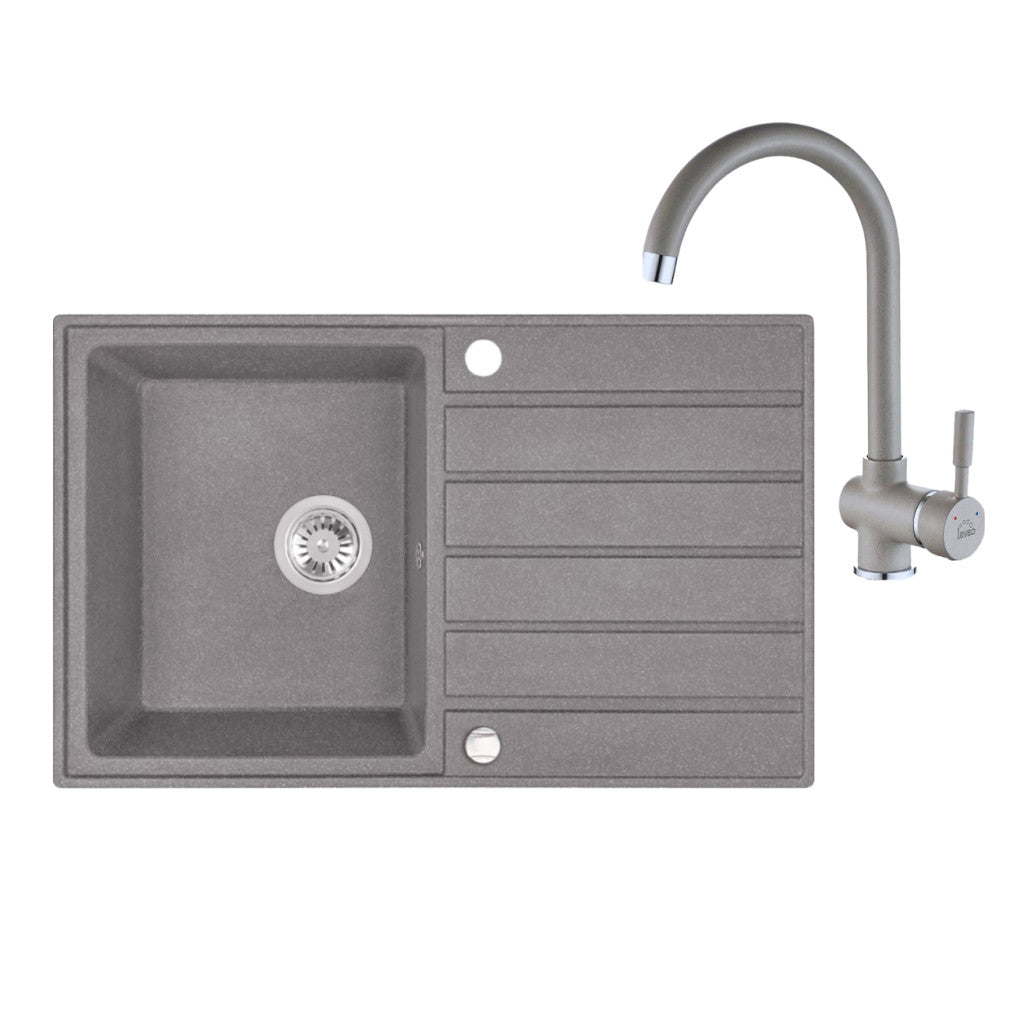 Laveo MARGARITA szürke szett álló csappal, automata dugókiemelős, helytakarékos szifonnal