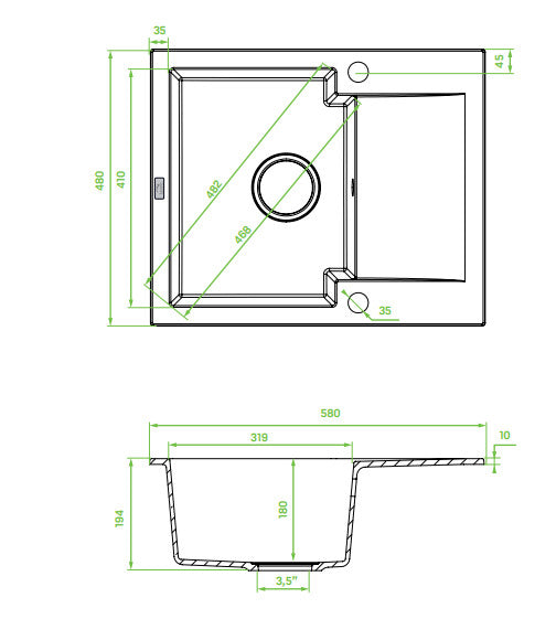 Laveo PICO 45S mini csepptálcás bézs gránit mosogató helytakarékos szifonnal