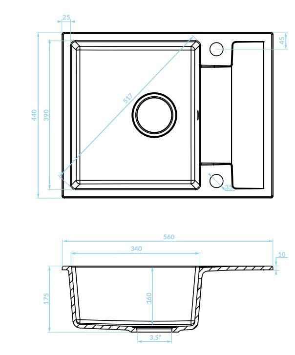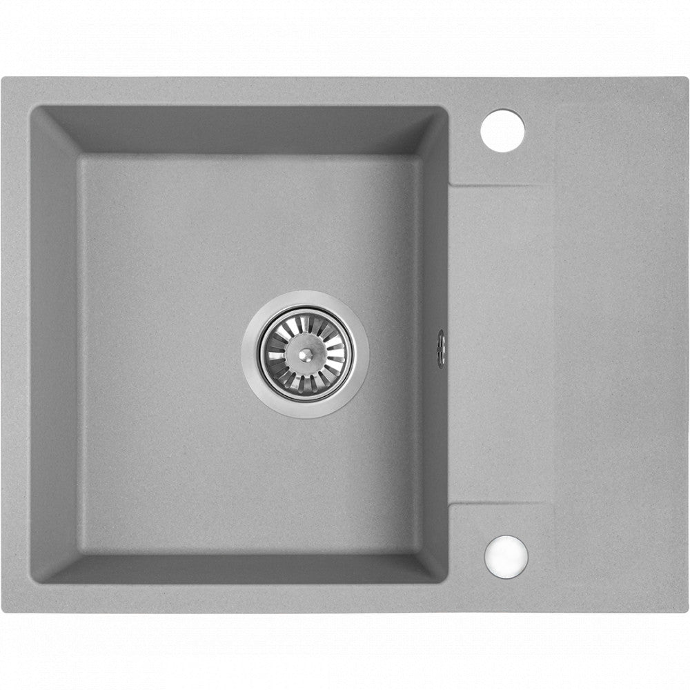 Laveo RAB MINI szürke csepptálcás mosogató helytakarékos szifonnal, csaplyuktakaró dugóval