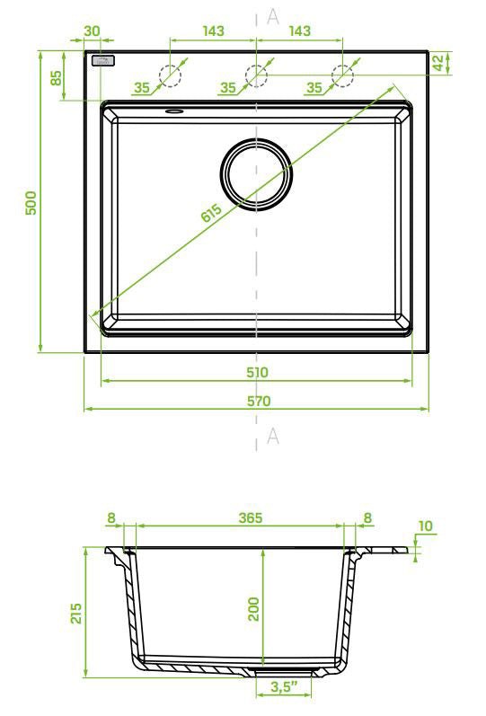 LAVEO TAU 6 egymedencés mosogató, fehér