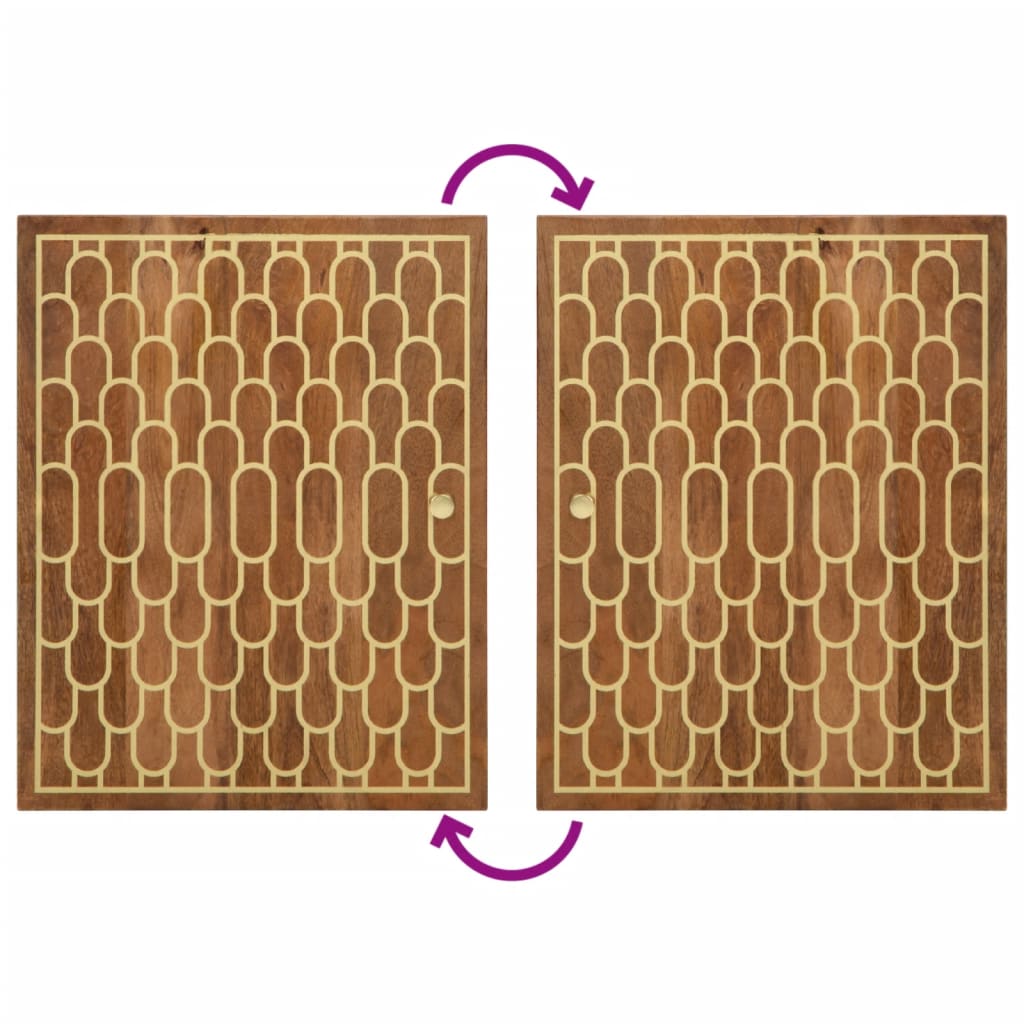 - Anyaga: tömör mangófa mézbarna bevonattal, üveg