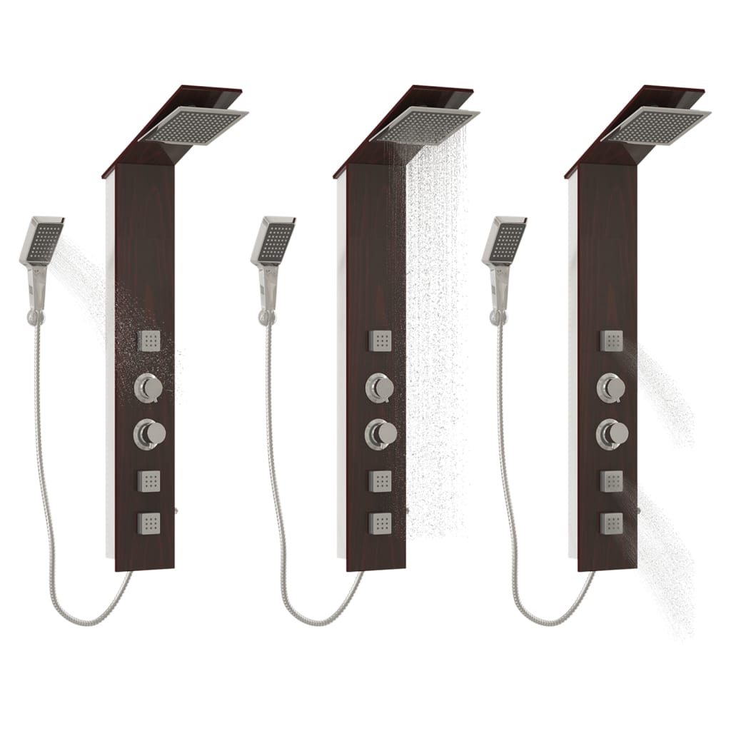 Ez a zuhanytorony kiváló minőségű, famintázatú üvegből készült és 3 funkcióval ellátott: esőztető, masszázs és kézi tusolófej, melyek könnyedén kiválaszthatóak a forgatható gomb segítségével.