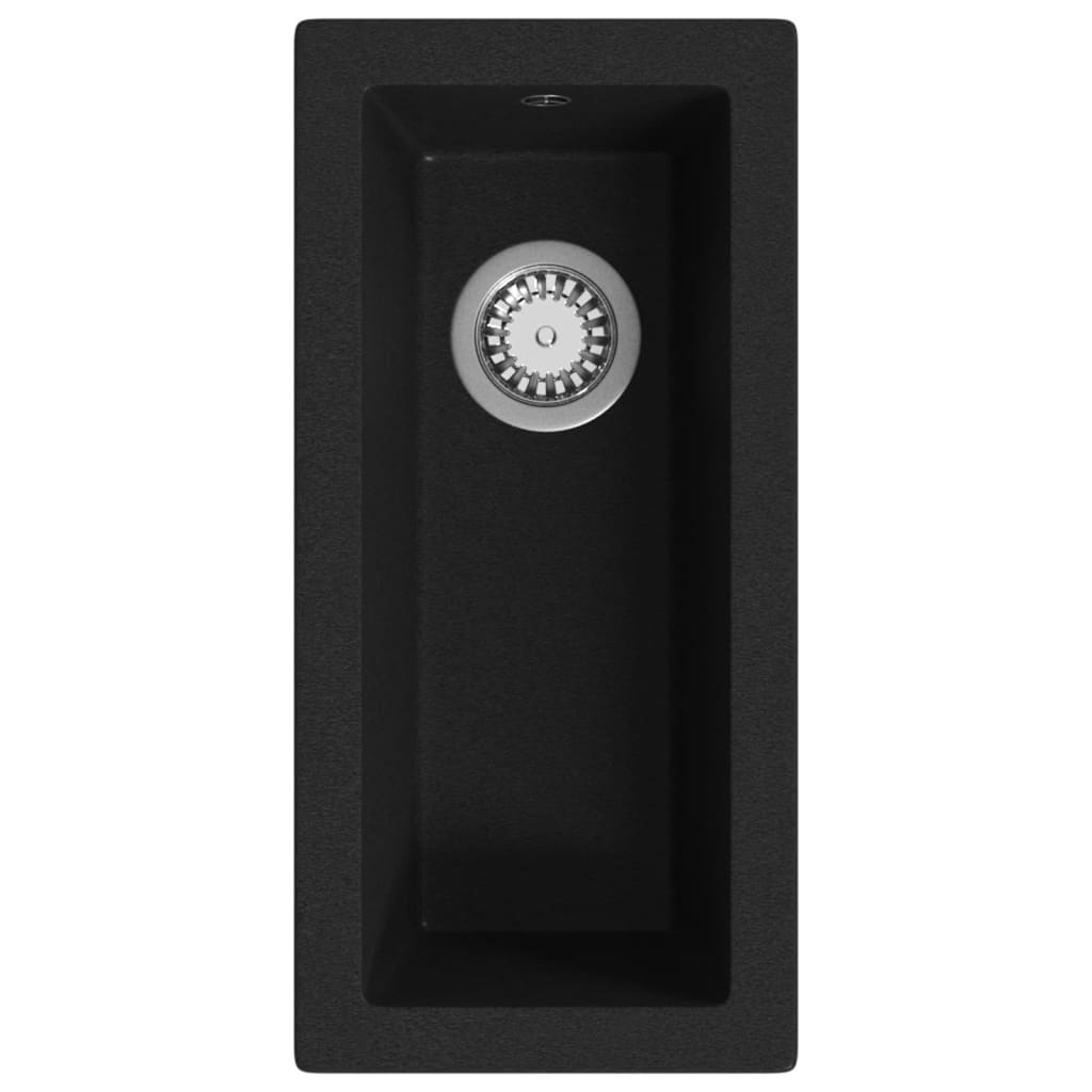 vidaXL fekete gránit konyhai mosogatótálca túlfolyóval