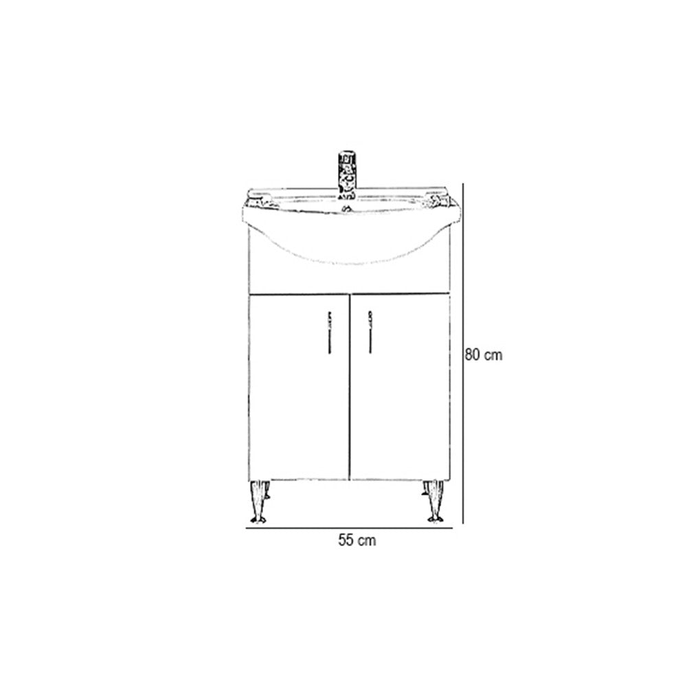 A fürdőszoba bútor kevés helyet foglal viszont tágas szekrénnyel rendelkezik ahol kényelmesen elférnek a fürdőszobai pipere eszközök. Kevés helyigénye miatt kisebb fürdőszobák berendezésére is alkalmas, például panel lakásokban. A termék magas minőségű bútorlapból készül és színben passzoló élzárókkal van ellátva. A fürdőszoba bútor mosdóval együtt kapható.
