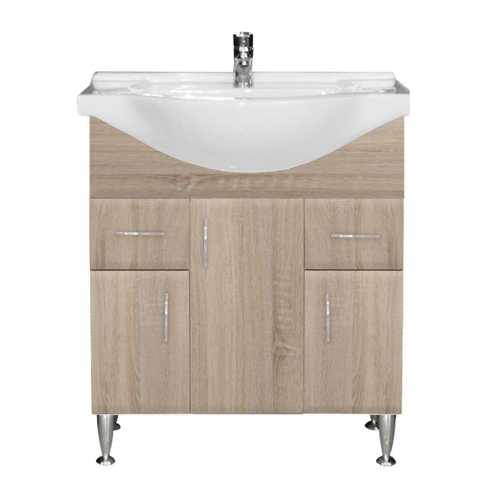 A fürdőszoba bútor kevés helyet foglal viszont tágas szekrénnyel és fiókkal rendelkezik ahol kényelmesen elférnek a fürdőszobai pipere eszközök. Kevés helyigénye miatt kisebb fürdőszobák berendezésére is alkalmas, például panel lakásokban. A termék magas minőségű bútorlapból készül és színben passzoló élzárókkal van ellátva. A fürdőszoba bútor mosdóval együtt kapható.