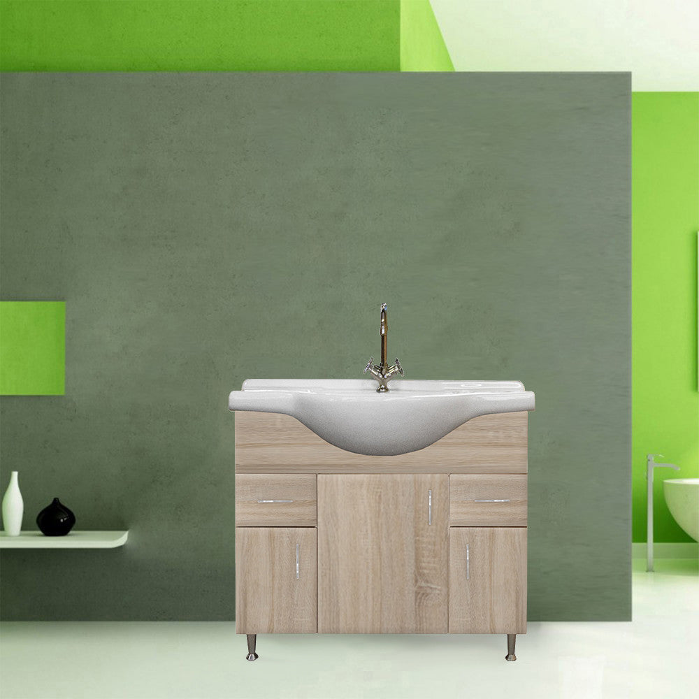 A fürdőszoba bútor kevés helyet foglal viszont tágas szekrénnyel és fiókkal rendelkezik ahol kényelmesen elférnek a fürdőszobai pipere eszközök. Kevés helyigénye miatt kisebb fürdőszobák berendezésére is alkalmas, például panel lakásokban. A termék magas minőségű bútorlapból készül és színben passzoló élzárókkal van ellátva. A fürdőszoba bútor mosdóval együtt kapható.