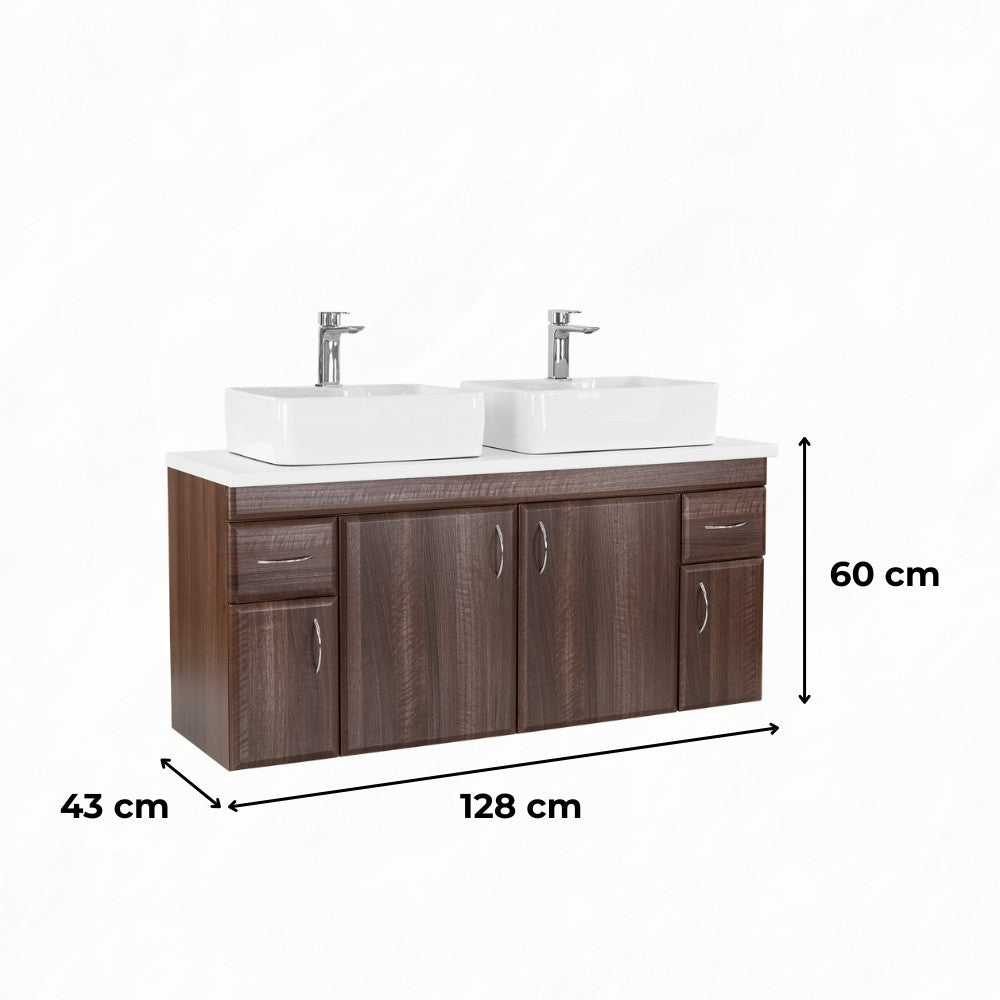 A Bianco 130 bútort a minimalista stílus és a praktikum jellemzi. A természetes hatású felület időtálló megjelenést biztosít, míg a 128 cm széles kialakítás két mosdónak is elegendő helyet kínál.