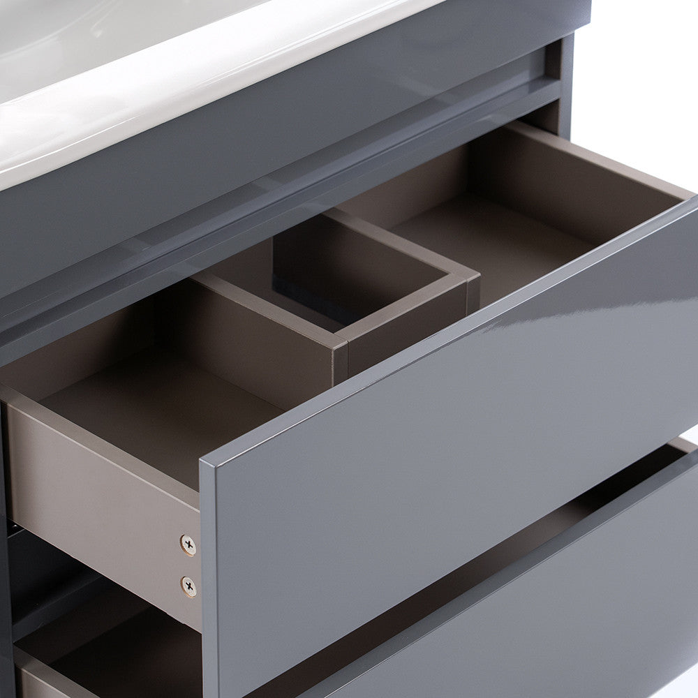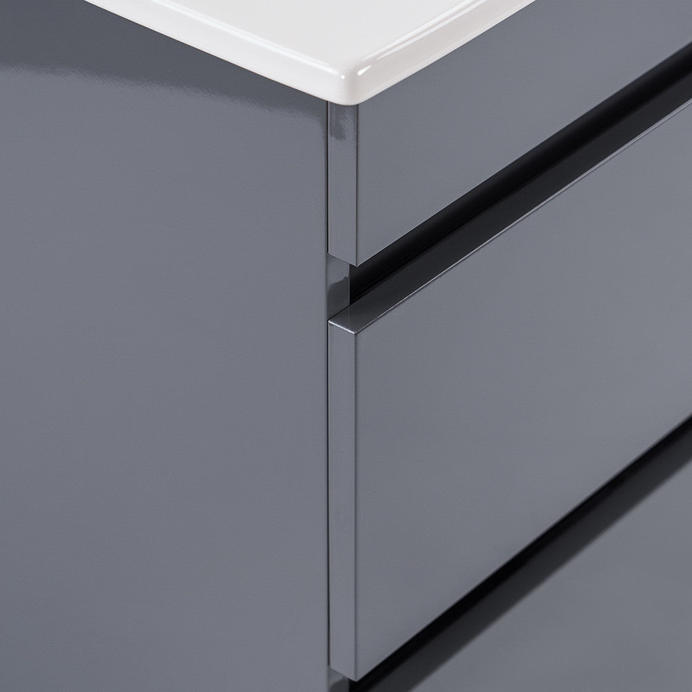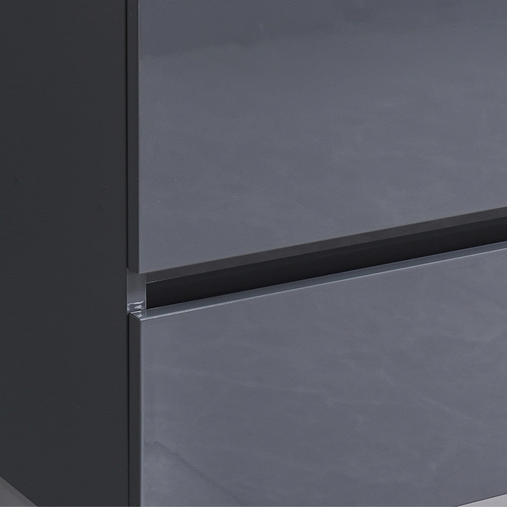 A funkcionalitás mellett természetesen a bútor megjelenésére is nagy figyelmet fordítottak. Magasfényű antracitszürke színének és letisztult modern vonalainak köszönhetően harmóniát teremt az összes fürdőszoba hangulatában.