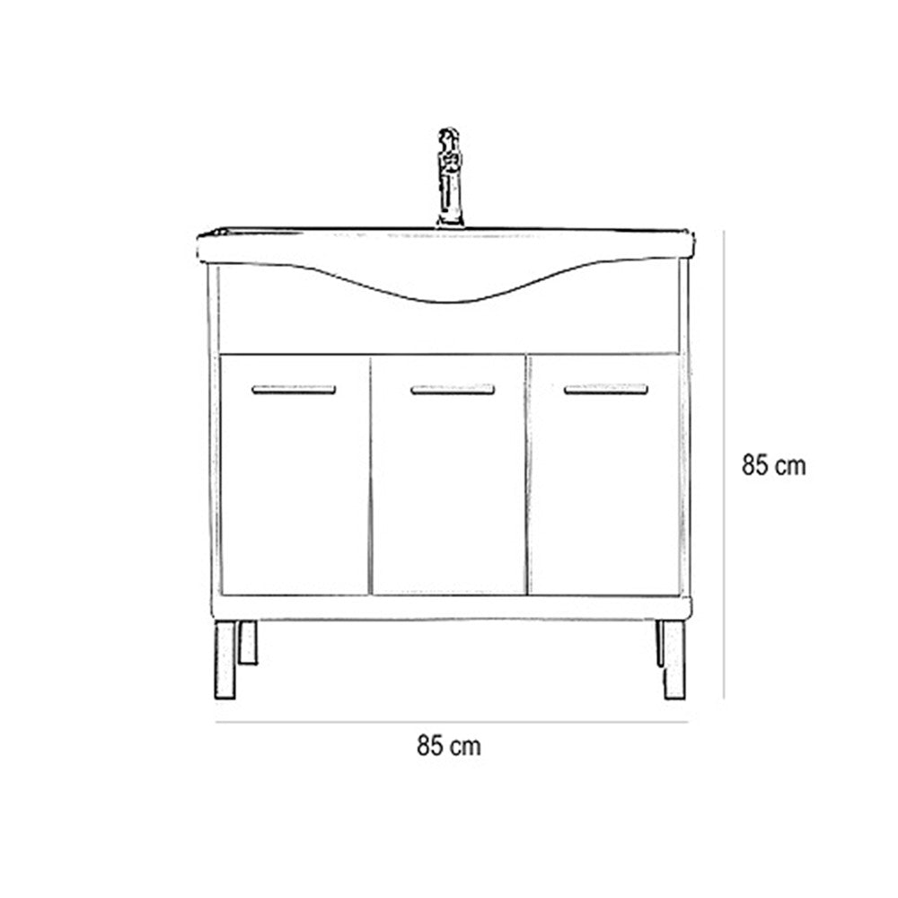 A fürdőszobabútor kevés helyet foglal viszont tágas szekrénnyel rendelkezik, ahol kényelmesen elférnek a fürdőszobai pipere eszközök. Kevés helyigénye miatt kisebb fürdőszobák berendezésére is alkalmas, például panel lakásokban. A termék magas minőségű bútorlapból készül és színben passzoló élzárókkal van ellátva. A fürdőszobabútor mosdóval együtt kapható. A terméket összeszerelve szállítjuk így nem kell aggódnia az összeállítás miatt sem.