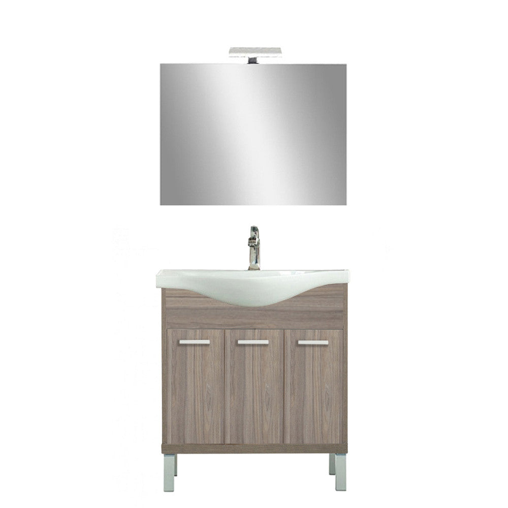A fürdőszobabútor kevés helyet foglal viszont tágas alsó és felső szekrénnyel rendelkezik ahol kényelmesen elférnek a fürdőszobai pipere eszközök. Kevés helyigénye miatt kisebb fürdőszobák berendezésére is alkalmas, például panel lakásokban. A termék magas minőségű bútorlapból készül és színben passzoló élzárókkal van ellátva. A fürdőszoba bútor mosdóval együtt kapható.