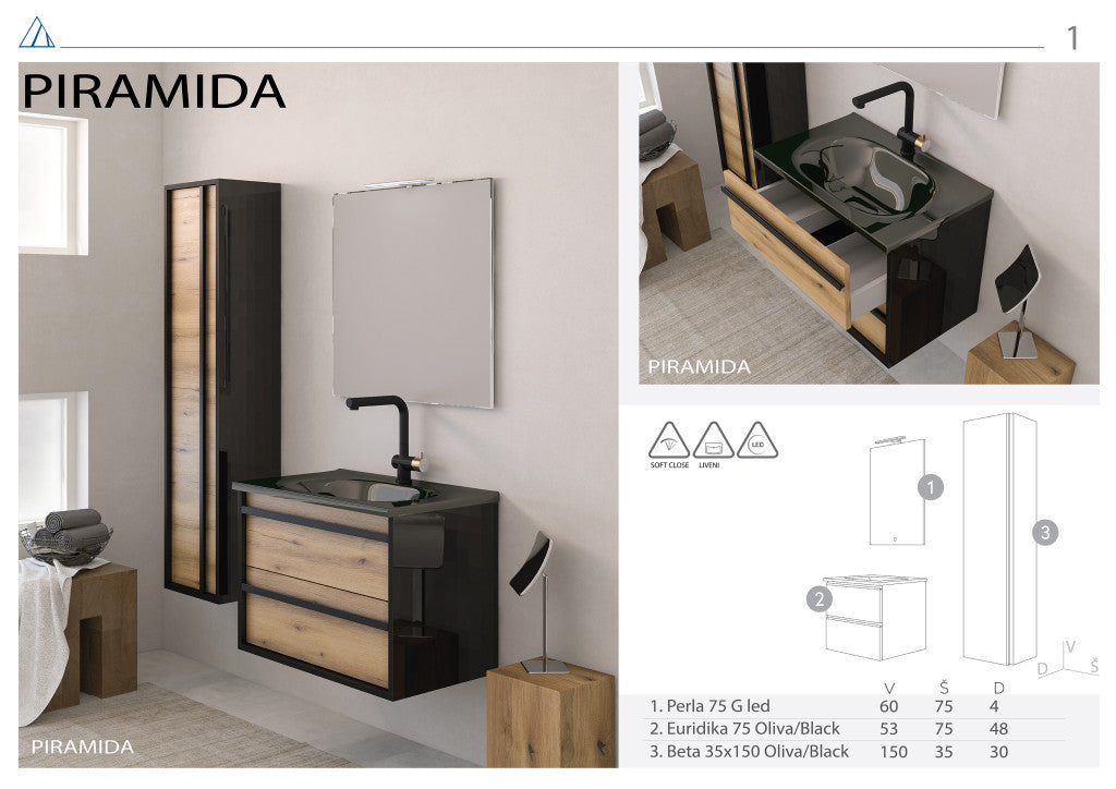 PIRAMIDA EURIDIKA OLIVA - FEKETE BETA fali függesztett fürdőszobai ÁLLÓSZEKRÉNY - 35 x 150 x 30 cm