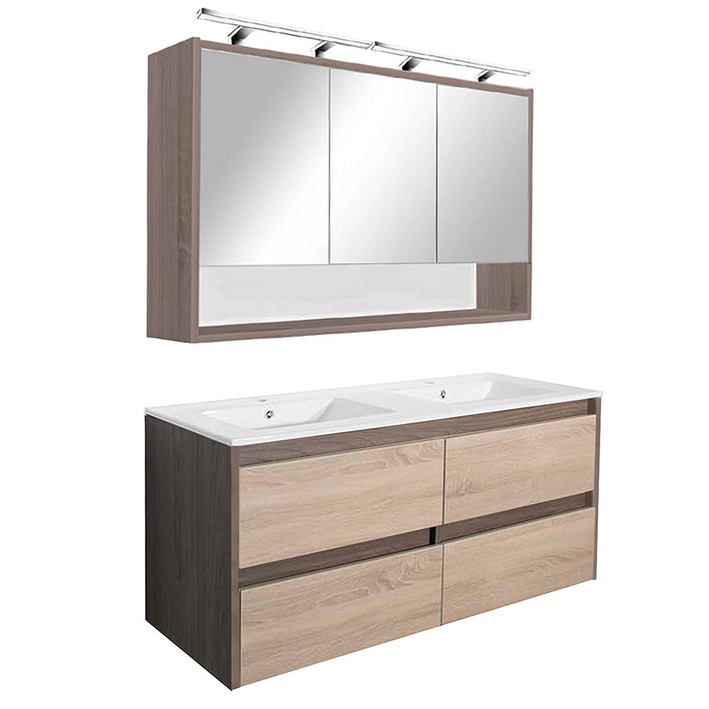 A csomag része a bútorra tökéletesen illeszkedő, fehér színű, dupla medencés kerámia mosdó is, amely két csaptelep számára kialakított hellyel rendelkezik. Így nem kell külön keresgélned hozzá megfelelő mosdót – a csomag mindent tartalmaz, amire a használathoz szükséged van (kivéve a csaptelepeket).