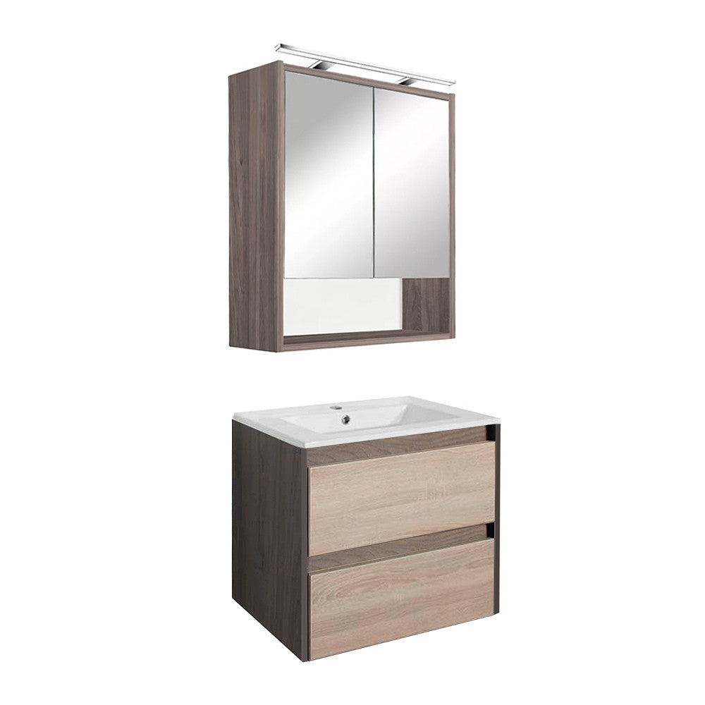 Leziter Porto 60 komplett rauna szil–sonoma tölgy – alsó és felső fürdőszobabútor mosdóval