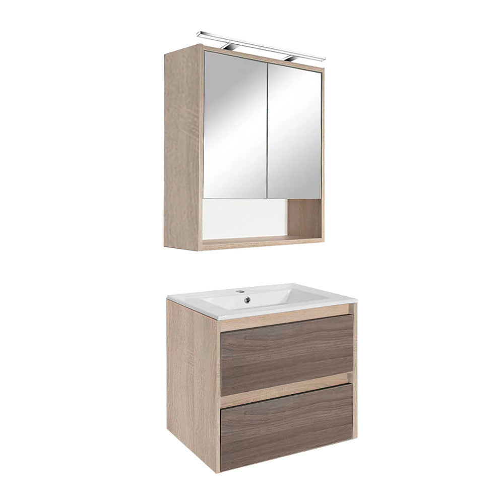 Leziter Porto 60 komplett sonoma tölgy–rauna szil – alsó és felső fürdőszobabútor mosdóval