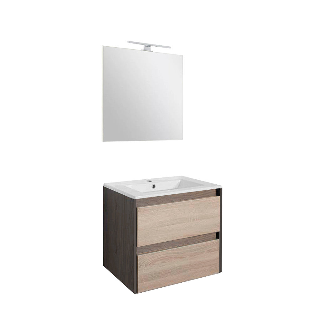 Leziter Porto Prime 60 komplett rauna szil–sonoma tölgy – alsó szekrény mosdóval és CUBE tükörrel