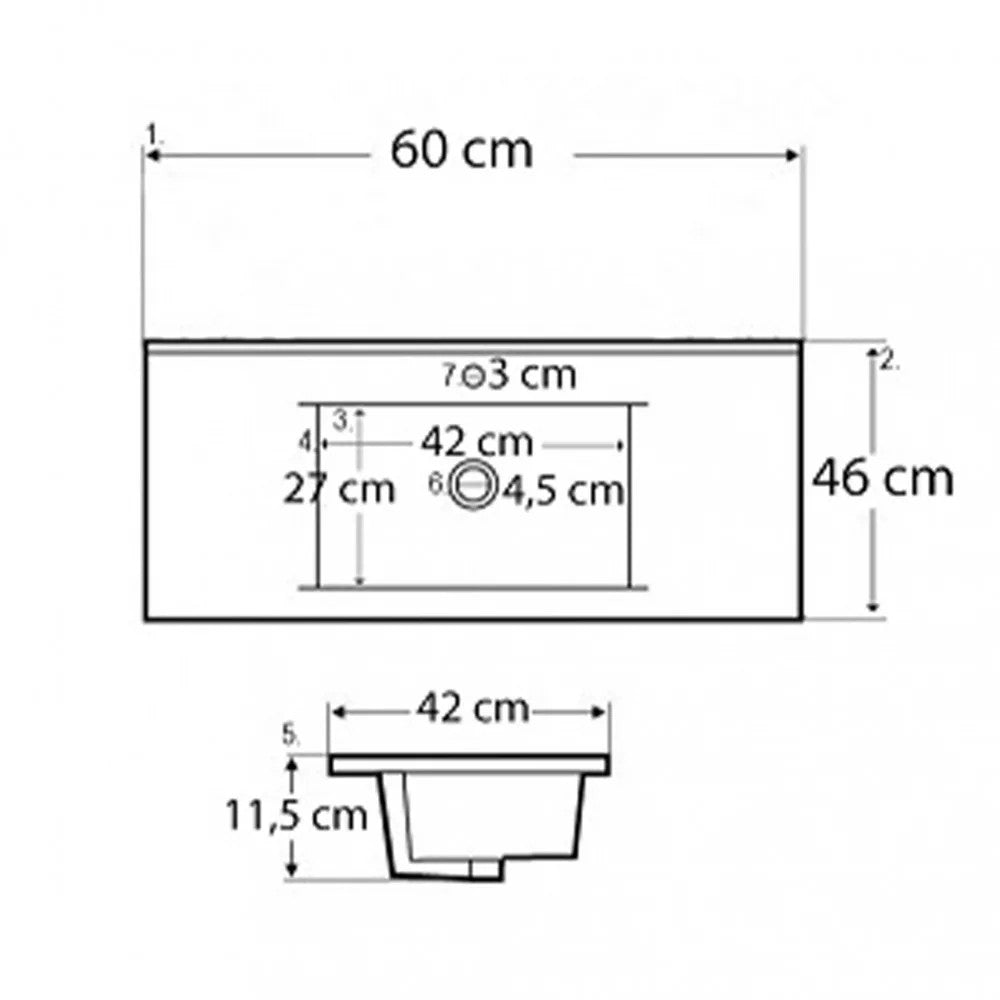 A csomag része a bútorra tökéletesen illeszkedő, fehér színű, mélymedencés kerámia mosdó is, amely egy csaptelep számára kialakított hellyel rendelkezik. Így nem kell külön keresgélned hozzá megfelelő mosdót – a csomag mindent tartalmaz, amire a használathoz szükséged van (kivéve a csaptelepet).