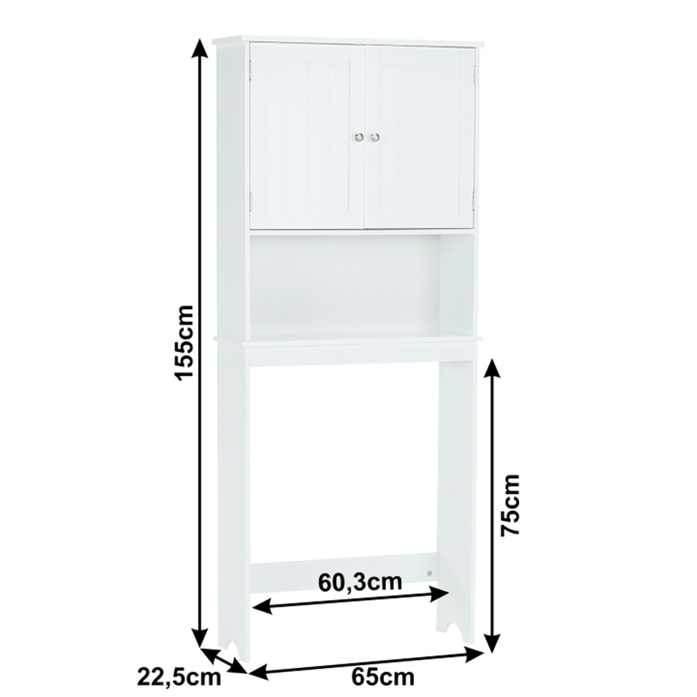 ATENE TYP 5 szekrény a WC fölé Színváltozat: fehér Anyag: MDF lakkozott Méretek (SzéxMéxMa): 65x22,5x155 cm Szállítás szétszerelve.