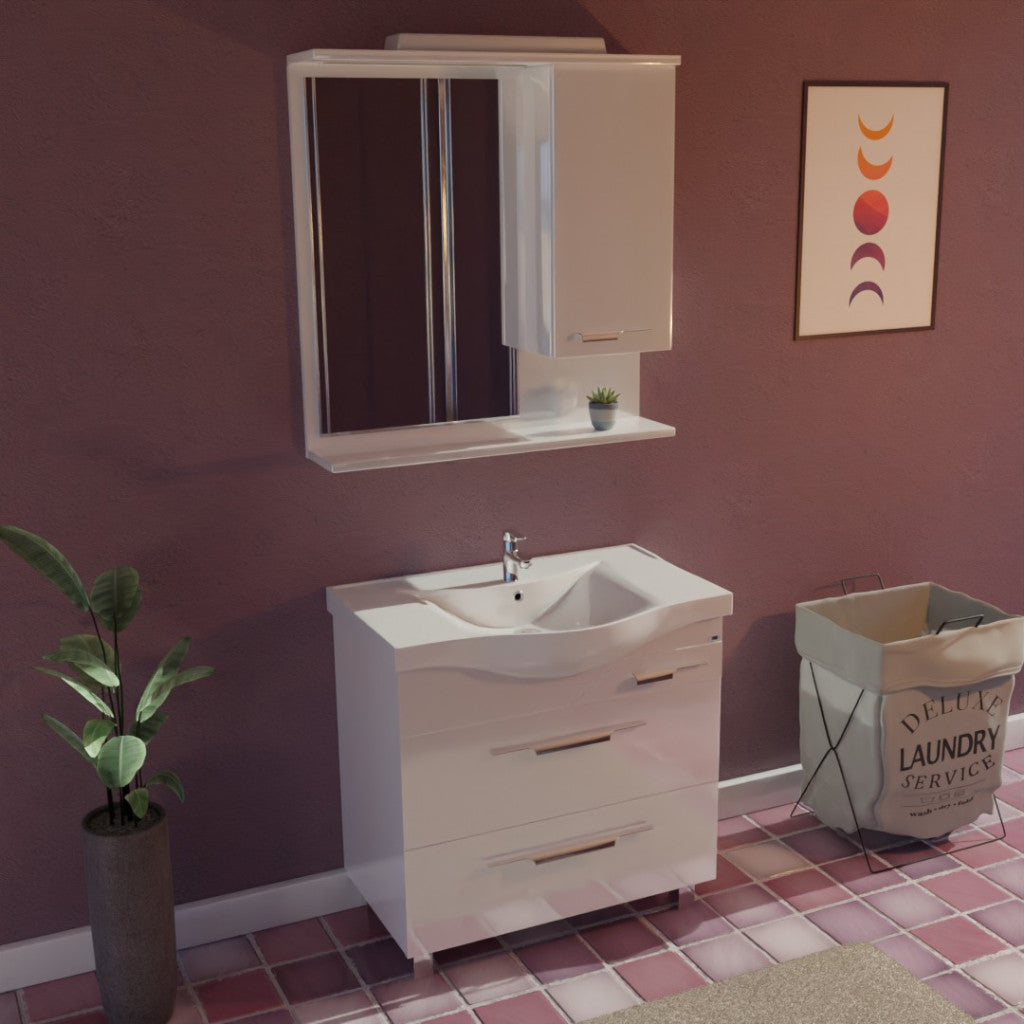 A TMP PLAY tükrös szekrény kevés helyet foglal viszont tágas szekrénnyel rendelkezik ahol kényelmesen elférnek a fürdőszobai pipere eszközök. Kevés helyigénye miatt kisebb fürdőszobák berendezésére is alkalmas. A termék magas minőségű mdf lapból készül. (A további képek között szereplő mosdószekrény mosdókagylóval nem az ajánlat része.)