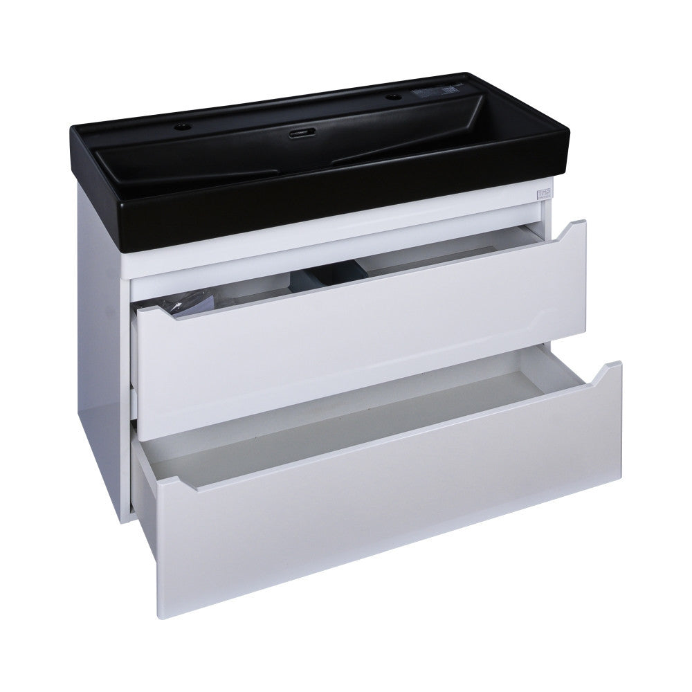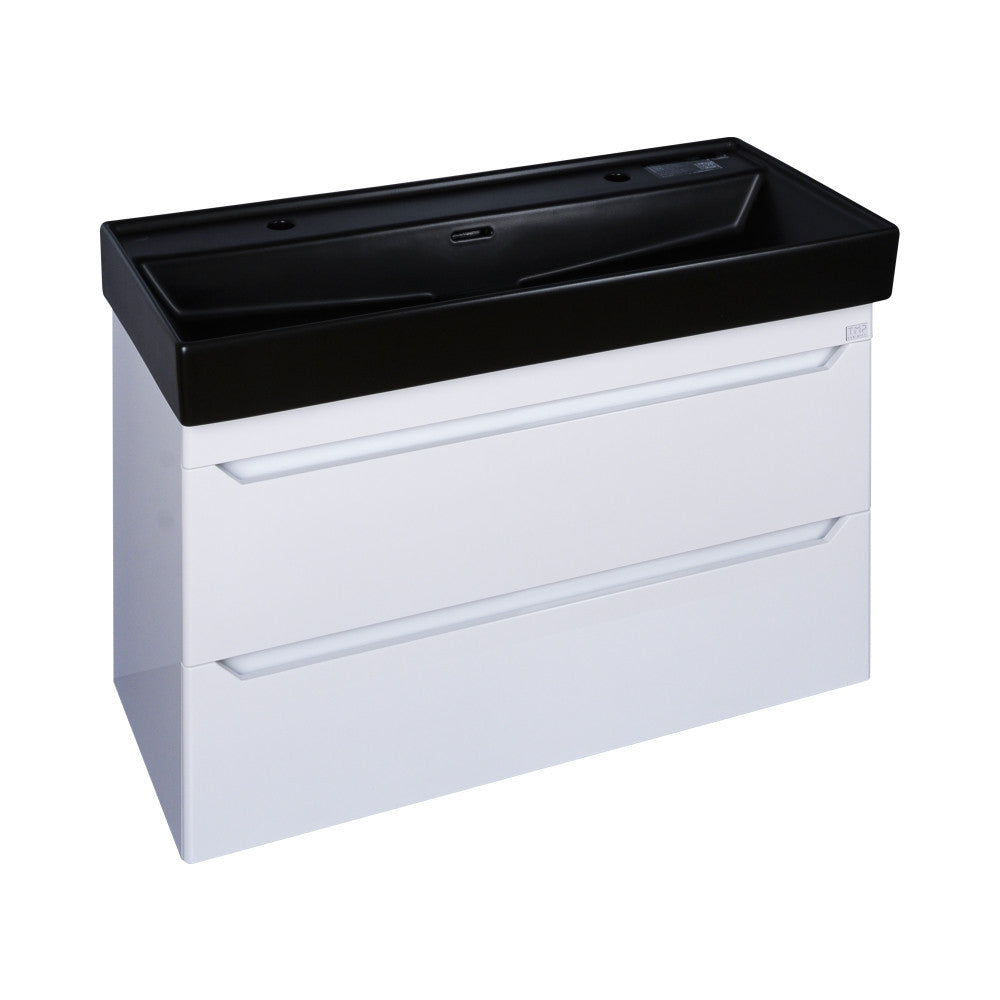 TMP SHARP fali fürdőszobabútor CeraStyle SHARP - FEKETE mosdóval DUPLA csaplyukkal - 100 x 48 cm
