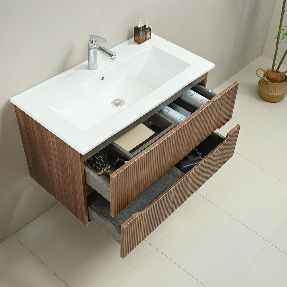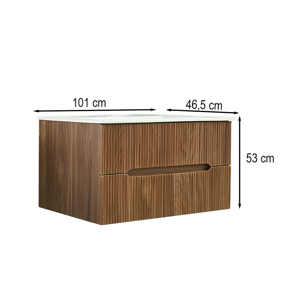 Trent 100 alsó fürdőszobabútor kerámia mosdóval 2 fiókos, sunset tölgy