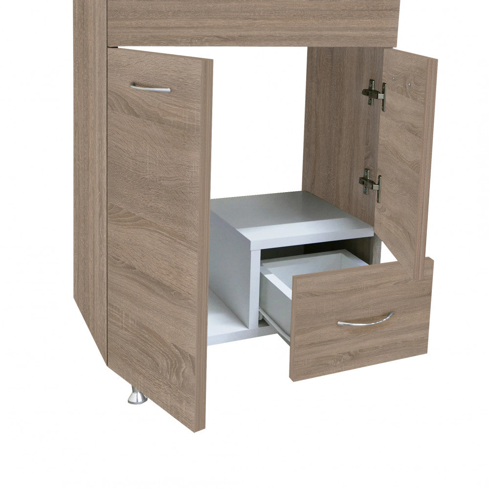 A funkcionalitás mellett természetesen a bútor megjelenésére is nagy figyelmet fordítottak. Szürke Sonoma tölgy színének és letisztult modern vonalainak köszönhetően harmóniát teremt az összes fürdőszoba hangulatában.