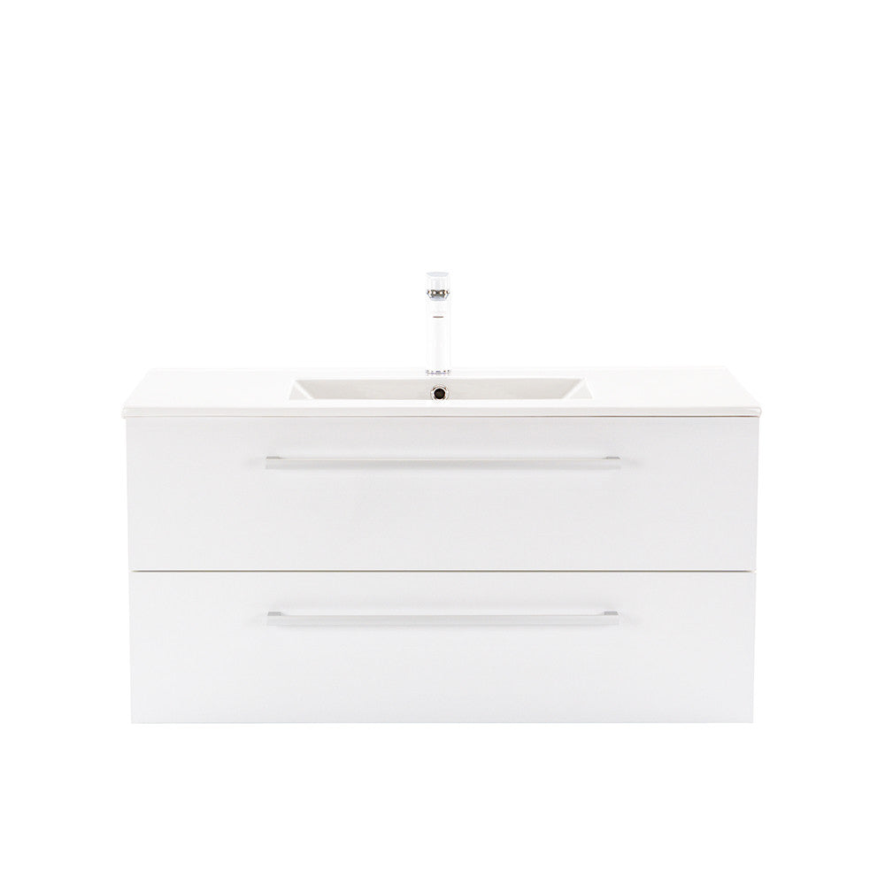 A Vario Clam 100 komplett fürdőszobabútor egy stílusos és praktikus választás modern fürdőszobához. Kompakt méretei ideálisak kisebb és közepes méretű fürdőszobákba is, és a fém fogantyú profil patinás hatást, az fehér-fehér színű dizájn elegáns megjelenést kölcsönöz a térnek. A csillapítós fiókzáródás és a felfüggesztett kivitel a kényelmet és könnyű tisztántartást szolgálja, míg a minőségi anyagok hosszú élettartamot biztosítanak.