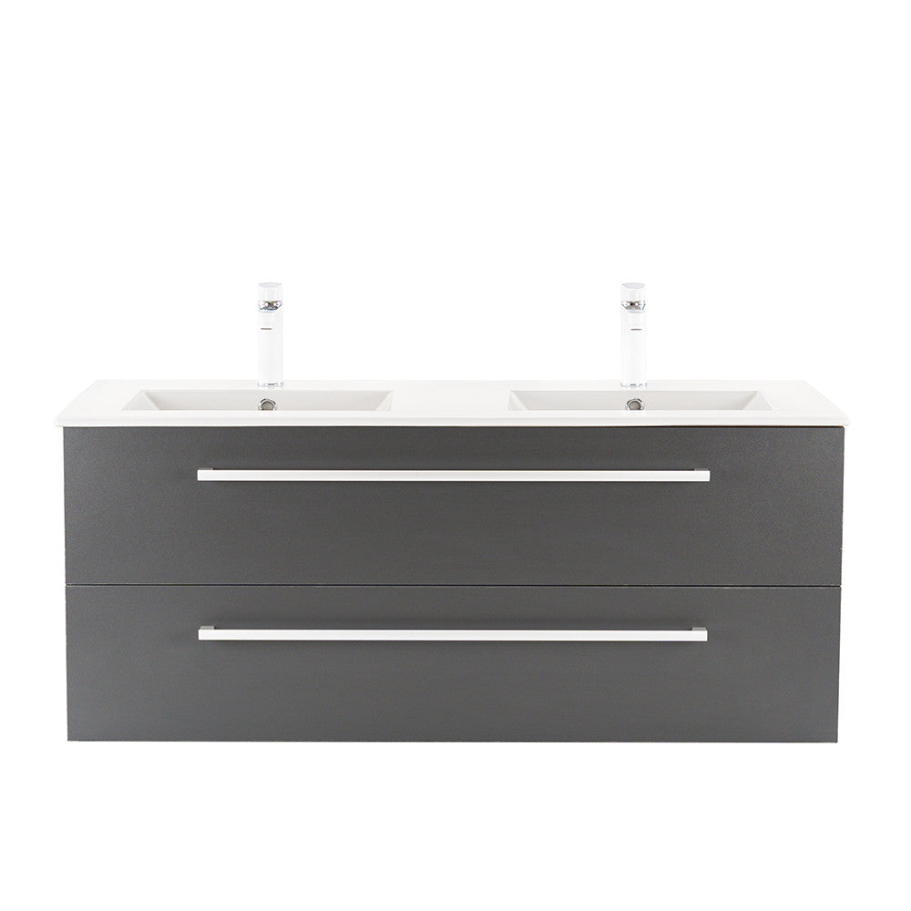 - Elegáns és praktikus mosdó: A bútor flat design kerámia mosdóval érkezik, amely két medencés kivitelű. Modern, esztétikus és könnyen tisztítható.