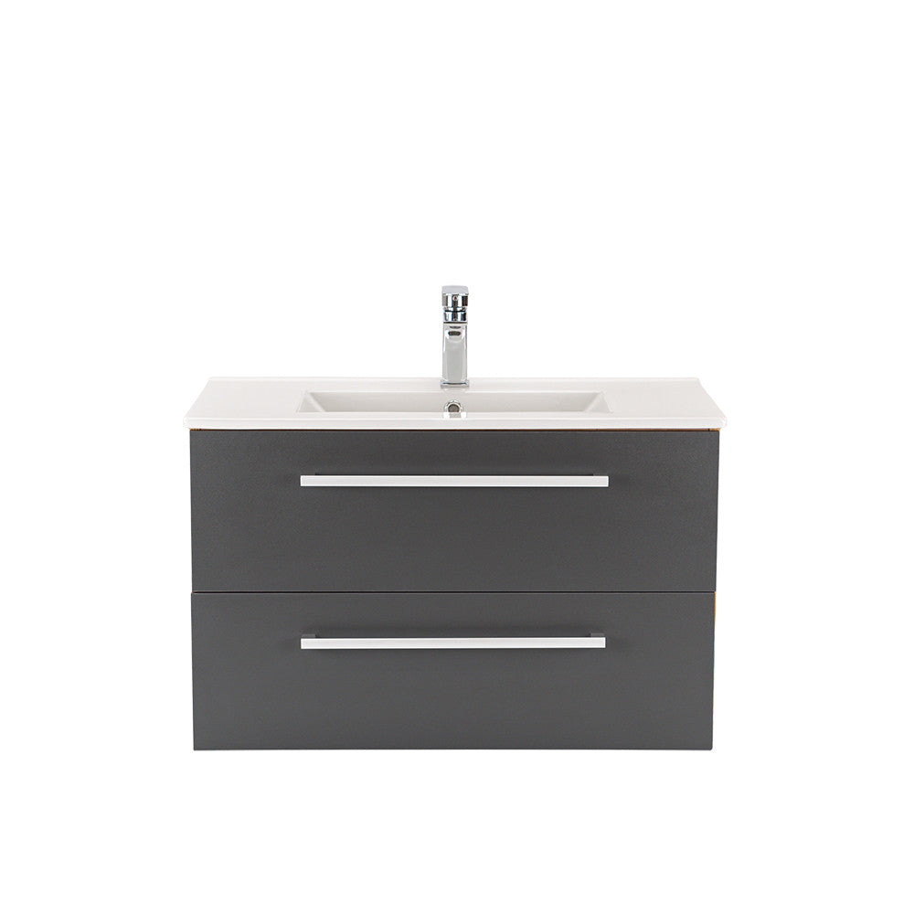 A Vario Clam 80 komplett fürdőszobabútor egy stílusos és praktikus választás modern fürdőszobához. Kompakt méretei ideálisak kisebb és közepes méretű fürdőszobákba is, és a fém fogantyú profil patinás hatást, a tölgy-antracit színű dizájn elegáns megjelenést kölcsönöz a térnek. A csillapítós fiókzáródás és a felfüggesztett kivitel a kényelmet és könnyű tisztántartást szolgálja, míg a minőségi anyagok hosszú élettartamot biztosítanak.