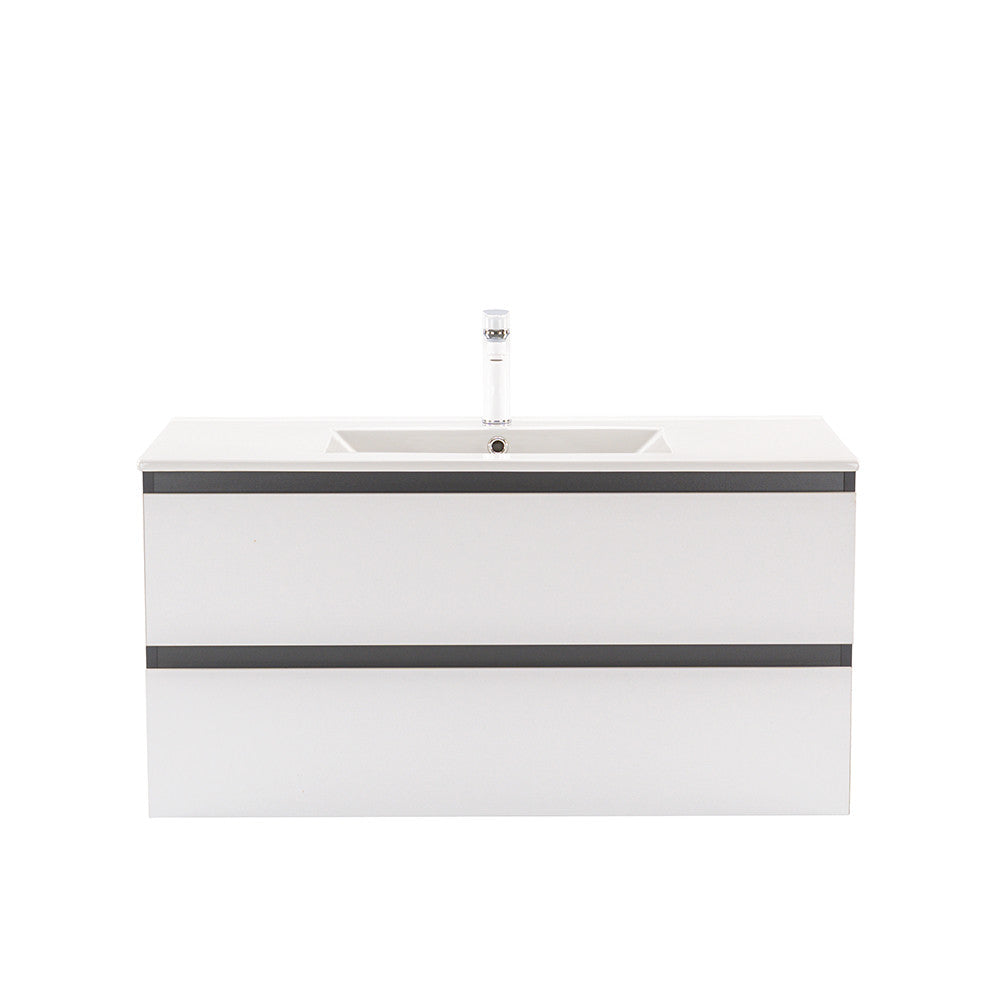 A Vario Forte 100 komplett fürdőszobabútor egy stílusos és praktikus választás modern fürdőszobához. Kompakt méretei ideálisak kisebb és közepes méretű fürdőszobákba is, a 45 fokos élzáródás modern hatást, az antracit-fehér színű dizájn elegáns megjelenést kölcsönöz a térnek. A csillapítós fiókzáródás és a felfüggesztett kivitel a kényelmet és könnyű tisztántartást szolgálja, míg a minőségi anyagok hosszú élettartamot biztosítanak.