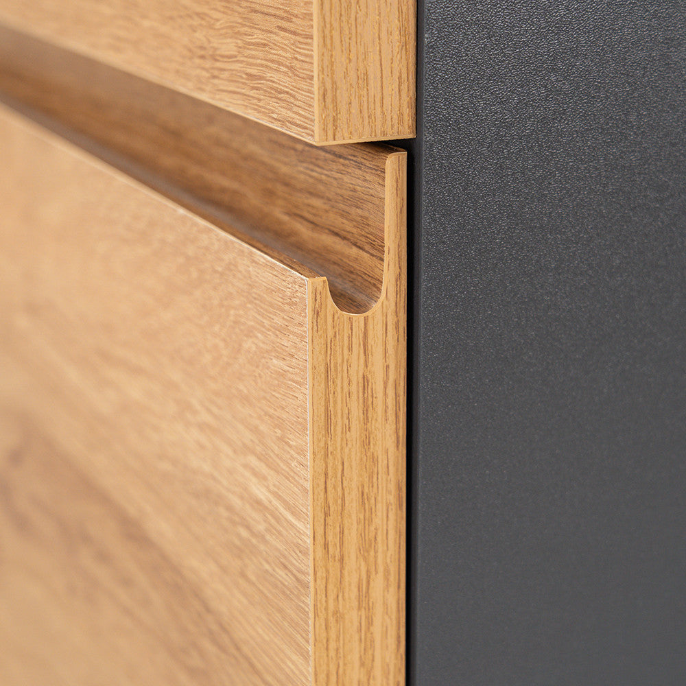 - Kifinomult színvilág: Az antracit korpusz és a tölgy front kombinációja elegáns és időtálló megjelenést kölcsönöz a bútornak.