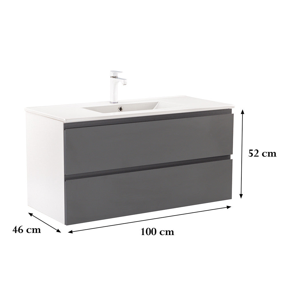 A Vario Pull 100 alsó szekrény mosdóval egy stílusos és praktikus választás modern fürdőszobához. Kompakt méretei ideálisak kisebb és közepes méretű fürdőszobákba is, és a J-profilú, fehér-antracit színű dizájn elegáns megjelenést kölcsönöz a térnek. A csillapítós fiókzáródás és a felfüggesztett kivitel a kényelmet és könnyű tisztántartást szolgálja, míg a minőségi anyagok hosszú élettartamot biztosítanak.