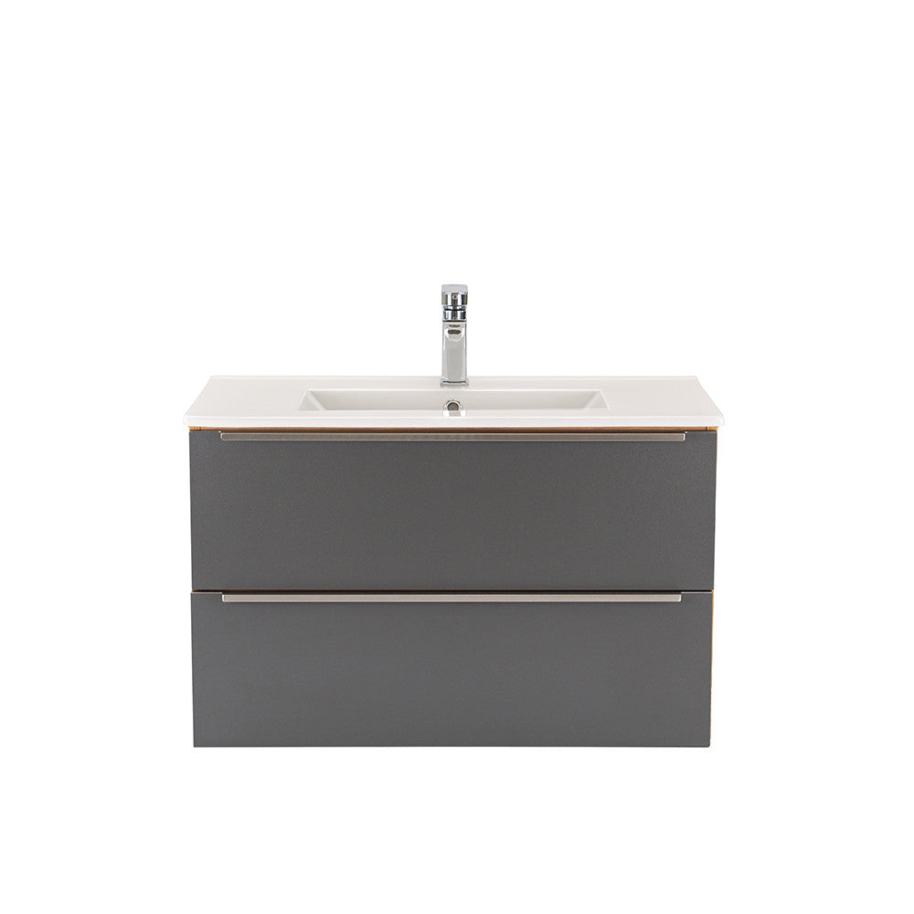 A Vario Trim 80 komplett fürdőszobabútor egy stílusos és praktikus választás modern fürdőszobához. Kompakt méretei ideálisak kisebb és közepes méretű fürdőszobákba is, és a fém fogantyú profil patinás hatást, a tölgy-antracit színű dizájn elegáns megjelenést kölcsönöz a térnek. A csillapítós fiókzáródás és a felfüggesztett kivitel a kényelmet és könnyű tisztántartást szolgálja, míg a minőségi anyagok hosszú élettartamot biztosítanak.