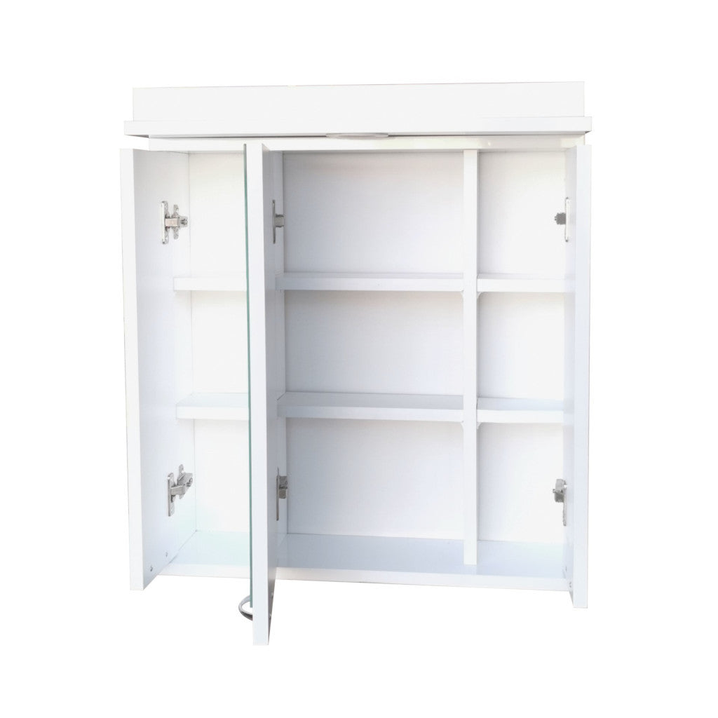 A Djani Nagy fehér színű MDF lapból készült fürdőszobai tükörös szekrény. Kevés helyigénye miatt kisebb fürdőszobák berendezésére is alkalmas.