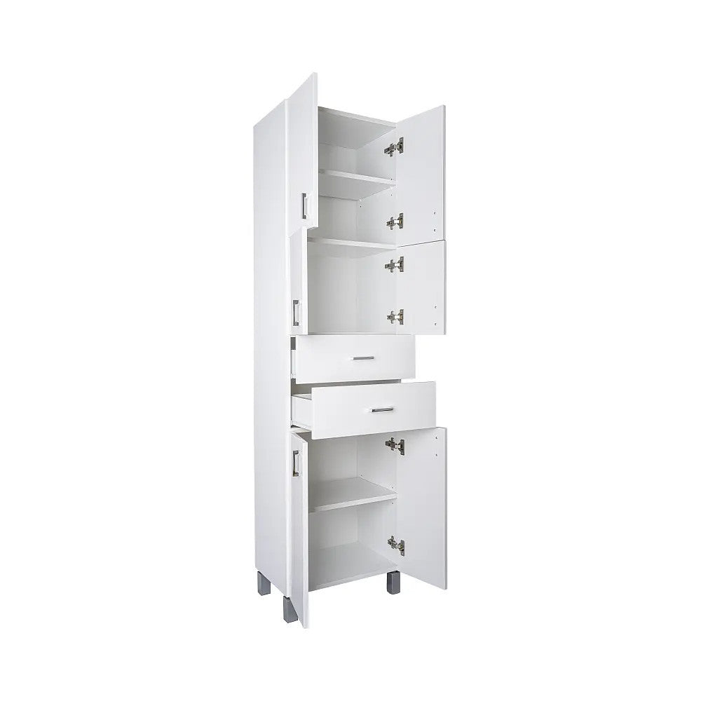 Az Állószekrény magas polcos praktikus és hasznos megoldást kínál. Polcaiban tárolhatók a kisebb ruhaneműk, törölközők vagy tisztító és tisztálkodó eszközök és szerek. Ezen felül még 2 fiókkal rendelkezik. Fehér színével szinte mindenhová beilleszkedik és esztétikus környezetet teremt. Rendezze be úgy fürdőszobáját, hogy a végeredmény örömet szerezzen a szemnek és szolgáljon sokáig!