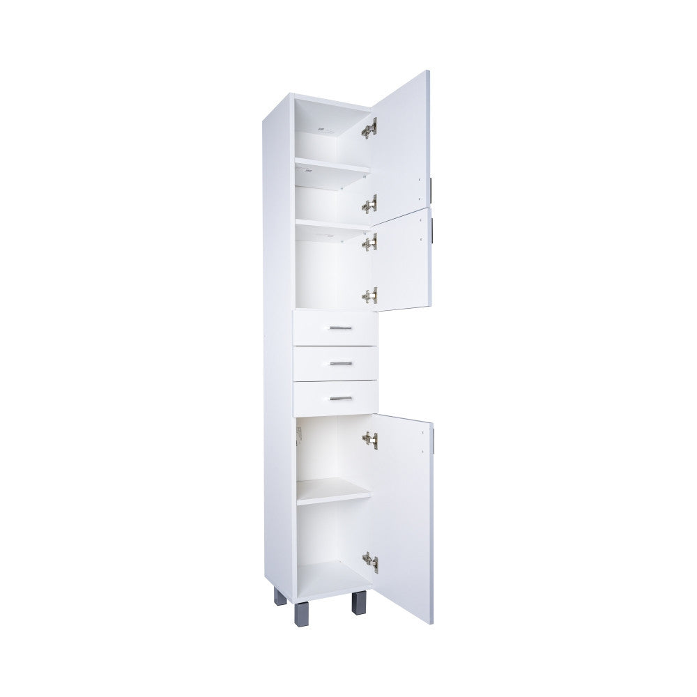 Az Állószekrény magas polcos praktikus és hasznos megoldást kínál. Polcaiban tárolhatók a kisebb ruhaneműk, törölközők vagy tisztító és tisztálkodó eszközök és szerek. Ezen felül még 3 fiókkal rendelkezik. Fehér színével szinte mindenhová beilleszkedik és esztétikus környezetet teremt. Rendezze be úgy fürdőszobáját, hogy a végeredmény örömet szerezzen a szemnek és szolgáljon sokáig!