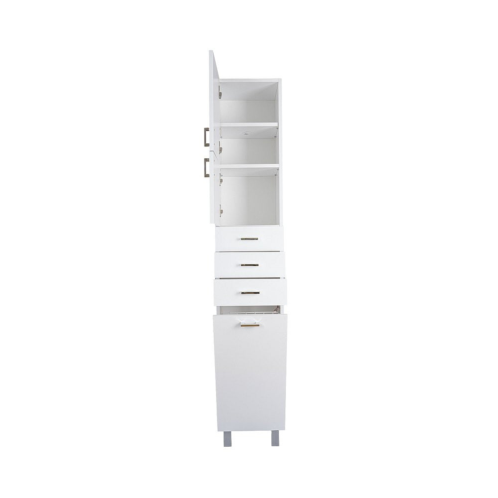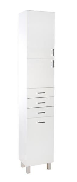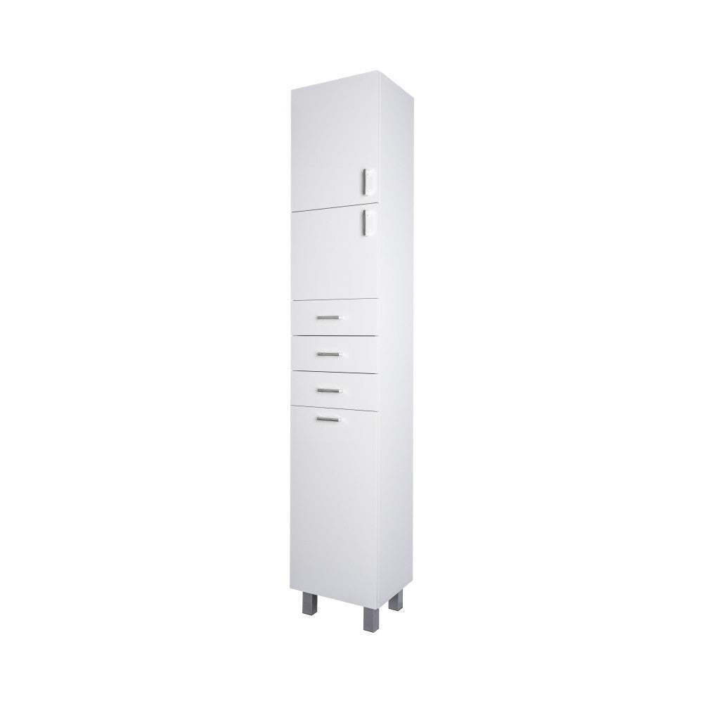Az Állószekrény magas szennyestartós praktikus és hasznos megoldást kínál. Polcaiban tárolhatók a kisebb ruhaneműk, törölközők vagy tisztító és tisztálkodó eszközök és szerek. Ezen felül még 3 fiókkal rendelkezik. A szekrény alsó részében található a szennyestartó kosár. Fehér színével szinte mindenhová beilleszkedik és esztétikus környezetet teremt. Rendezze be úgy fürdőszobáját, hogy a végeredmény örömet szerezzen a szemnek és szolgáljon sokáig!