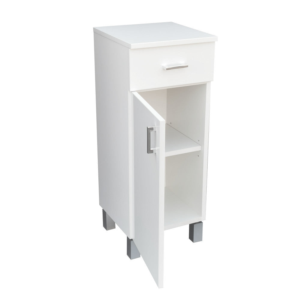 Az Állószekrény alacsony polcos praktikus és hasznos megoldást kínál. Felső részén 1 fiók található az alul pedig polccal van ellátva. Fehér színével szinte mindenhová beilleszkedik és esztétikus környezetet teremt. Rendezze be úgy fürdőszobáját, hogy a végeredmény örömet szerezzen a szemnek és szolgáljon sokáig!