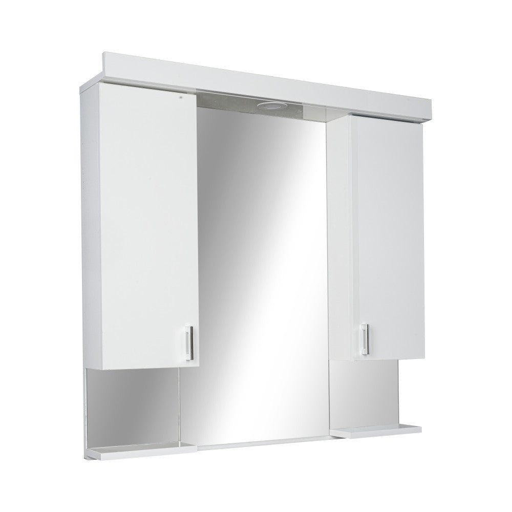 A tükrösszekrény integrált LED világítással és MDF polccal van ellátva. A szekrény függesztett kivitele egy tartós, masszív fali konzollal van rögzítve az ön védelme érdekében és a stabilitás jegyében. Erős krómozott fogantyú: Az elegancia és a funkcionalitás magas szintje. A tükrös szekrény tökéletes választás az elegáns, letisztult stílus kedvelőinek és emellett ár-érték arányban is a legokosabb választás, amit fürdőszobájának berendezése során megtehet.