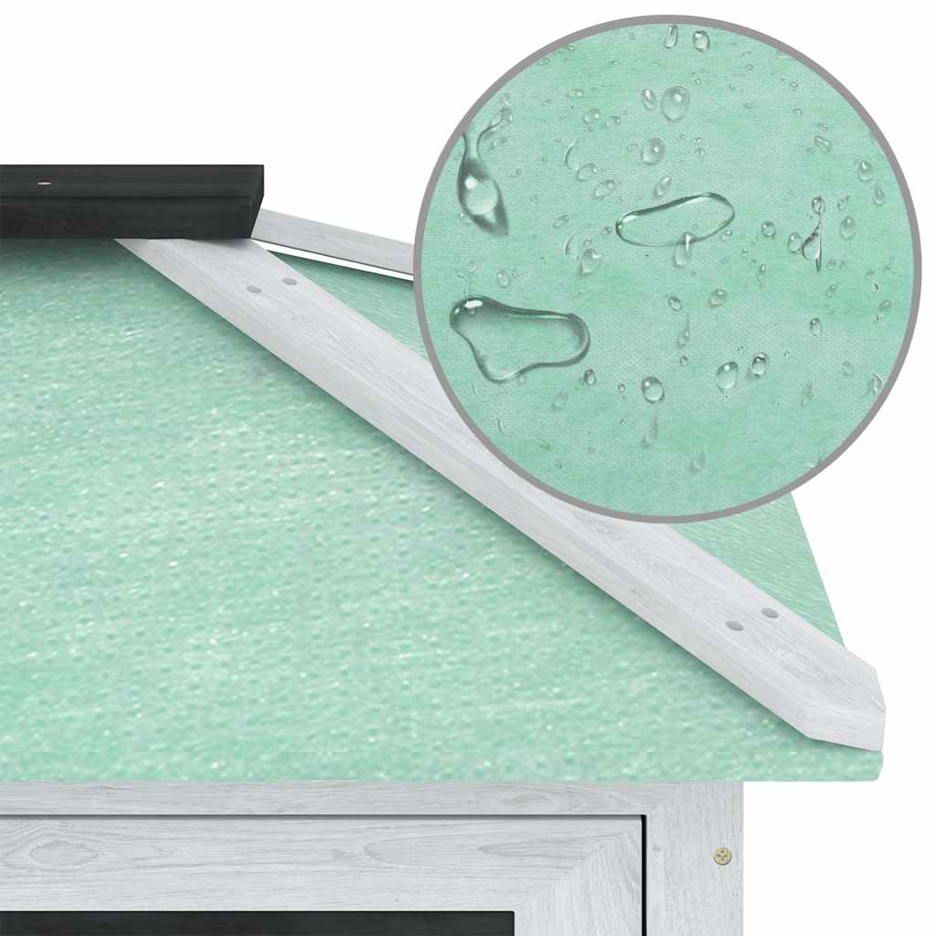 Az állatketrec kiváló minőségű fakeret felhasználásával készült, ami évekig kitart. Zöld teteje távol tartja az esőt, miközben a kényelmes búvóhely tökéletes alvóhelyet biztosít. Könnyen megmászható létra vezet az alsó földszintről a felső szintre. A kihúzható tálca megkönnyíti a tisztítást. Ez a fa nyúlketrec tökéletes kisállatok tartására.
