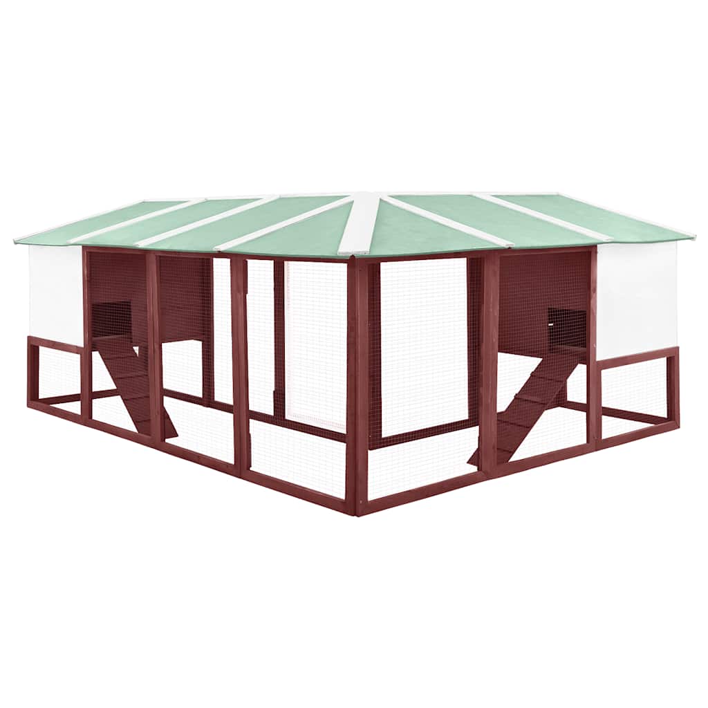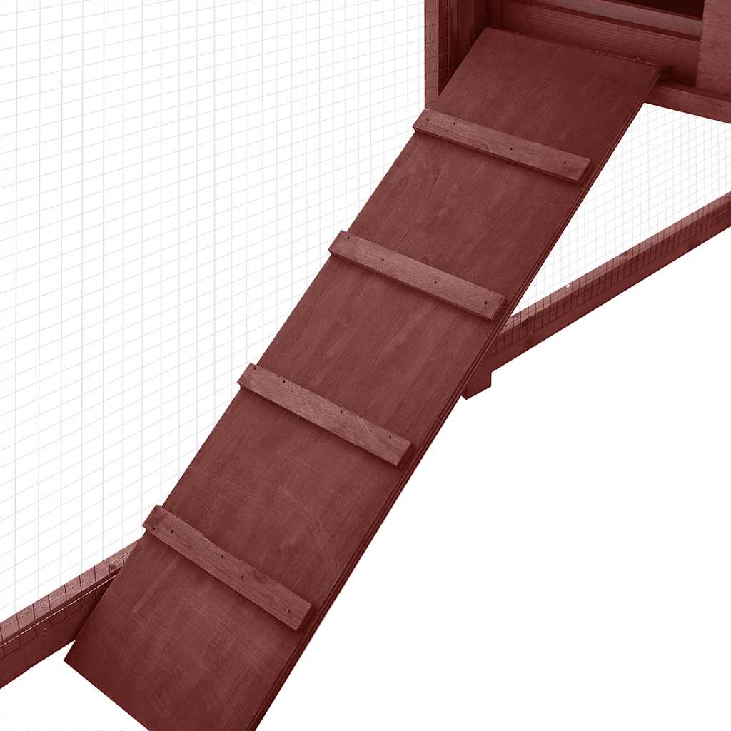A nyúlketrec két házzal és egy nagyon nagy, horganyzott acél dróthálóval ellátott kifutóval rendelkezik, hogy szemmel tartsa kedvenceit, és megakadályozza a váratlan baleseteket is. A nyulak megfigyelését is biztosítja, és lehetővé teszi számukra, hogy elegendő friss levegőt kapjanak. A kisállatház tömör fenyőfa vázzal rendelkezik, így stabil és tartós. A dönthető tetőt vízálló anyag borítja, így távol tartja az esőt. A búvóhely tökéletes alváshoz. A csúszásmentes rámpa az alsó emelettől a felsőig vezet.