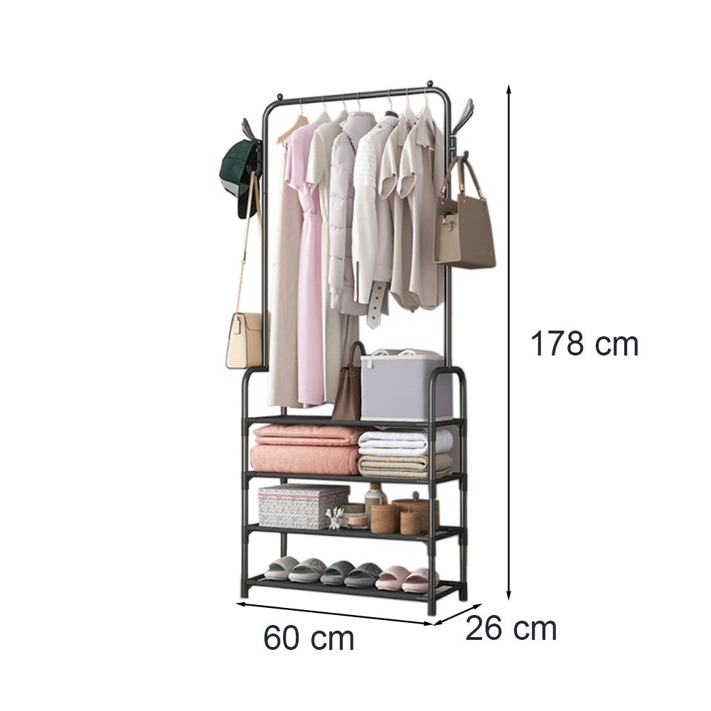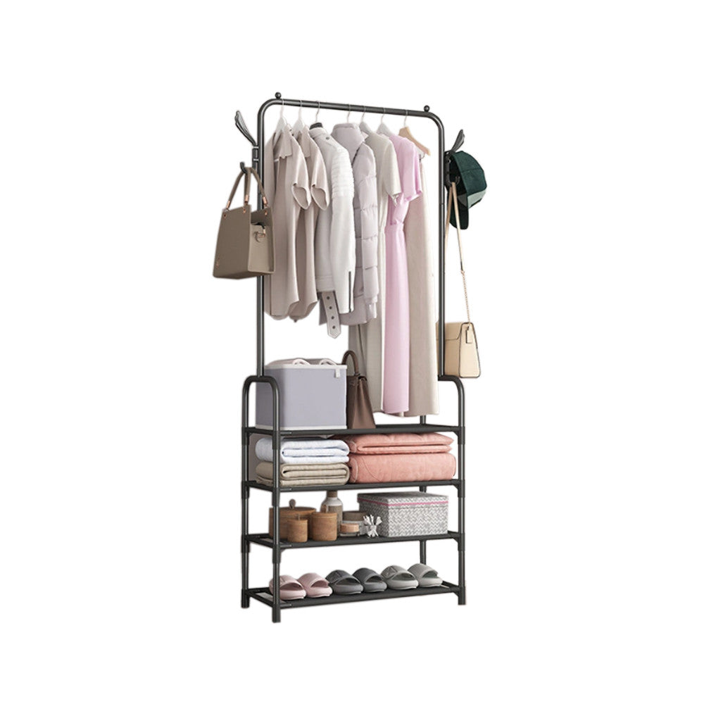 - Rend és szervezettség: Az állvány több szintjének köszönhetően könnyedén rendszerezhetők a ruhák, a cipők és a kiegészítők. Minden darabnak meglesz a saját helye, így elkerülheted a rendetlenséget.
