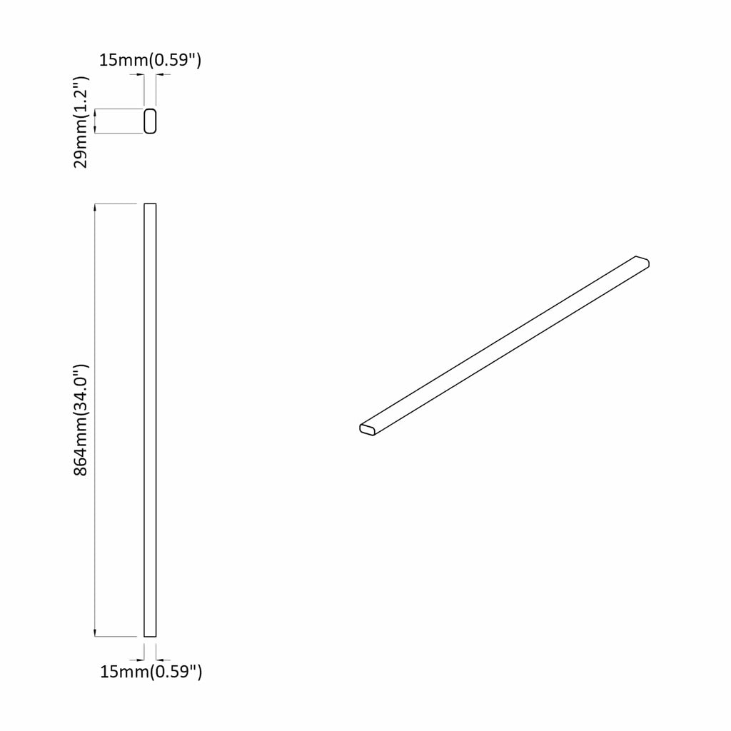 - Általános dimenziók: 864 x 15 x 29 mm (Ho x Szé x Ma)