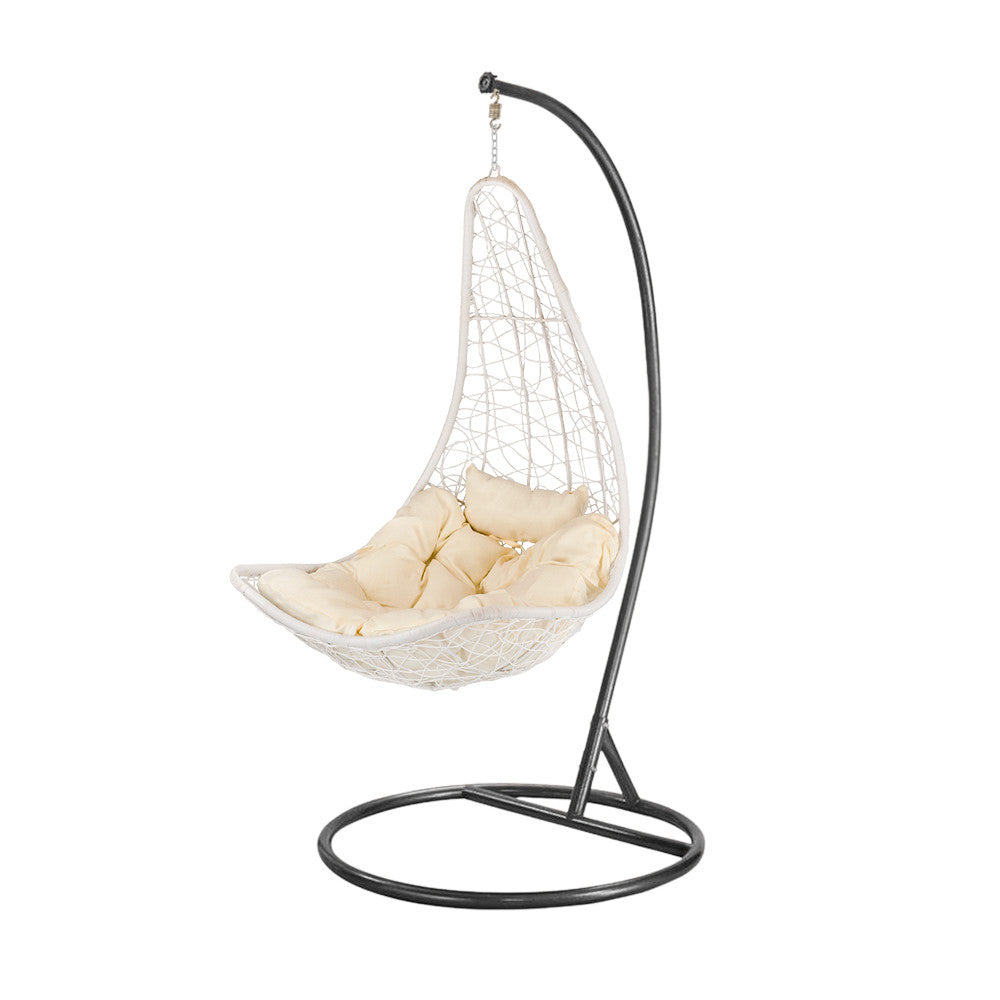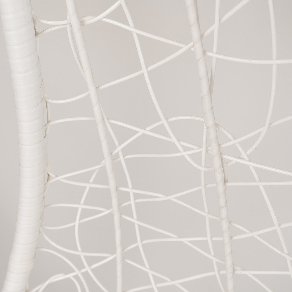 A kosár sűrű szövésű PE rattanból készül, amely az esztétitkai előnyök mellett, időjárásálló is. A fehér színű rattan anyag ellenáll a szélsőséges időjárási körülményeknek, így a függőfotel hosszú távon is megőrzi szépségét.